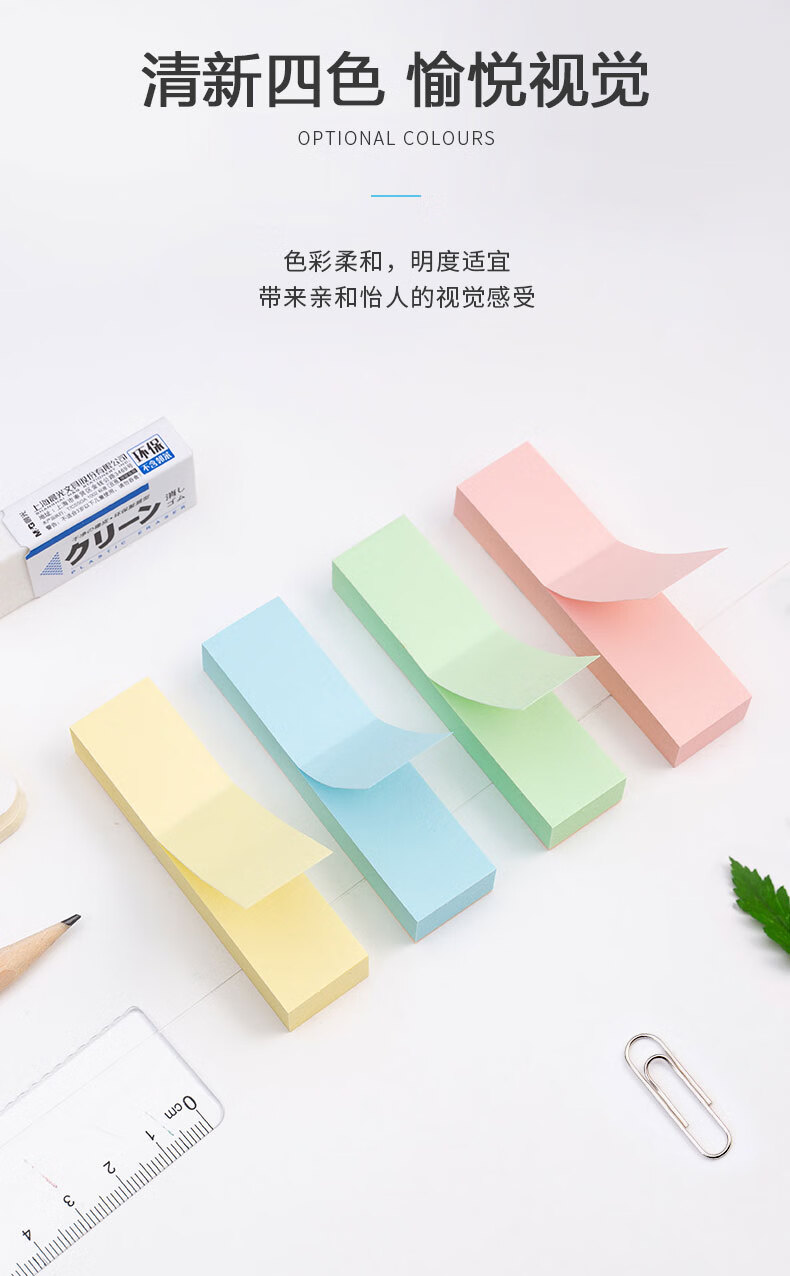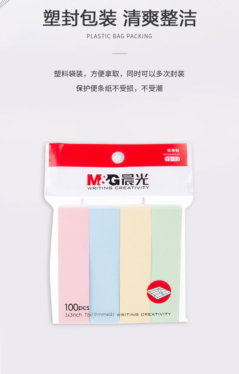 晨光/M&G YS-13 记事贴 晨光彩色便利贴便签纸留言贴3X3四分条优事贴N次贴易事贴100页四分条便签纸 YS-13 1包