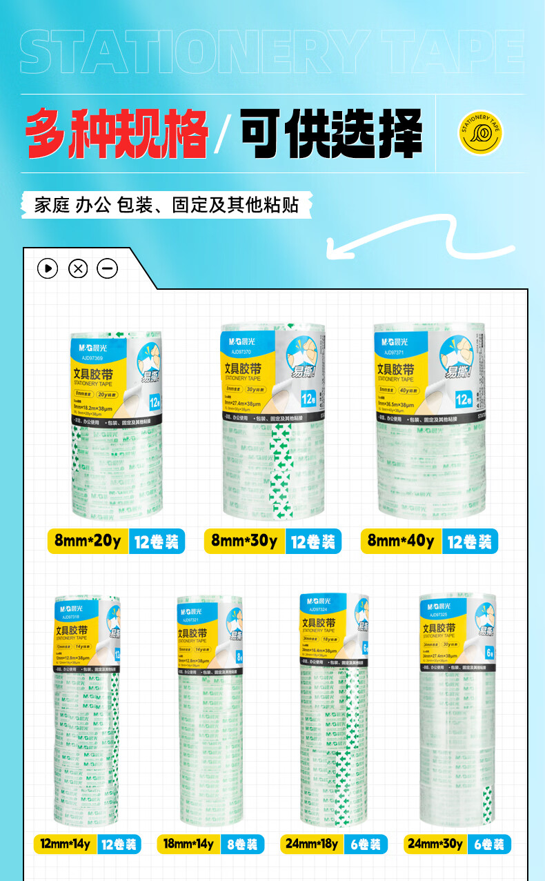 晨光/M&G AJD97369 胶带 8mm*20y透明文具胶带 高透易撕小胶带 学生手工胶布 12卷