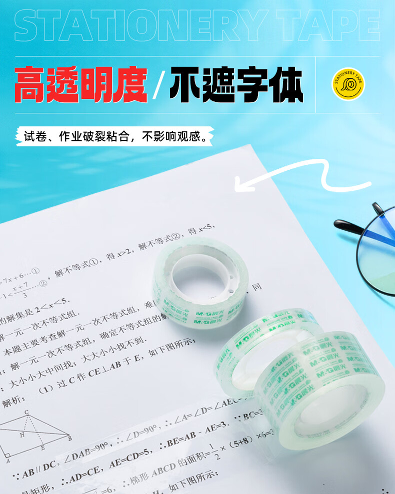 包装清单  :   8mm*40y透明文具胶带 高透易撕小胶带 学生手工胶布 12卷