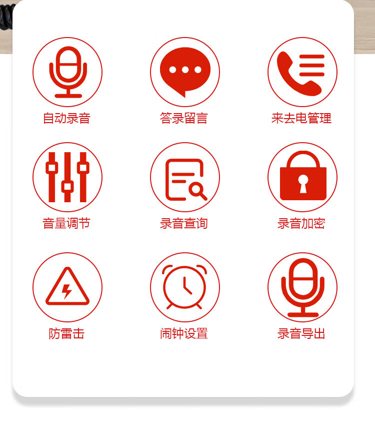 包装清单  :   电话机x1,适配器x1,手柄曲线x1,电话线x1,说明书x1,合格证x1,维修卡x1