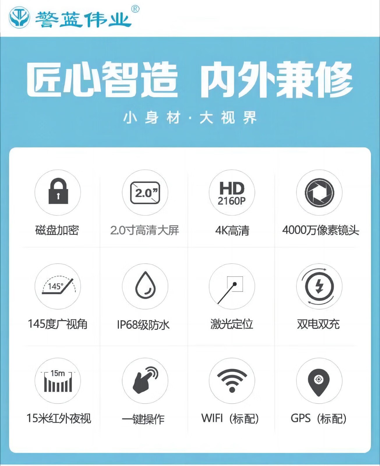 警蓝伟业 DSJ-E5 通用无线电通信设备 工作记录仪4K高清摄像GPS手机APP操控 WiFi+GPS版 增强版 256G