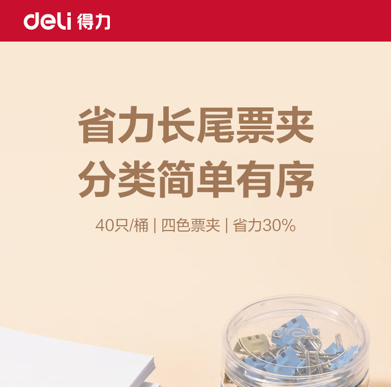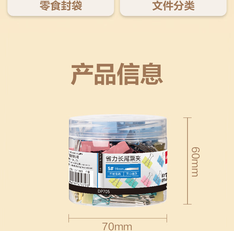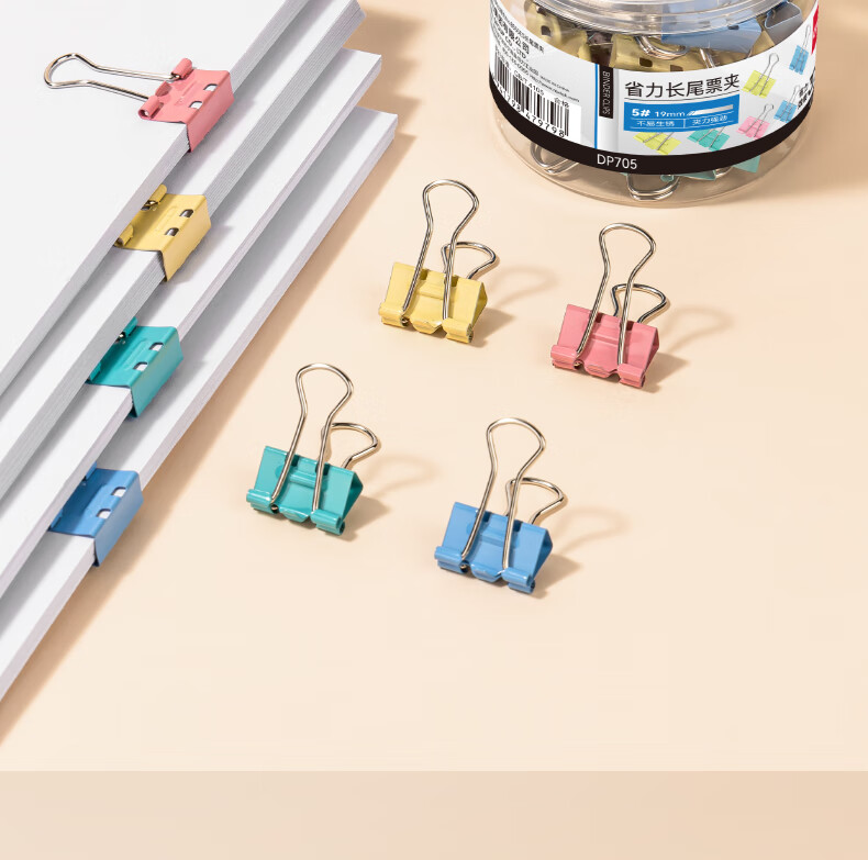 包装清单  :   省力长尾票夹5#19mm DP705 混 40枚/筒