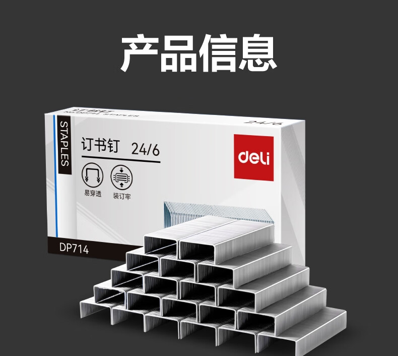 包装清单  :   订书钉12# DP714 银 1000枚/盒