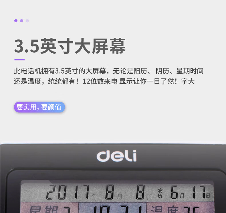 得力/deli DP763 普通电话机 来电显示 黑色 1台
