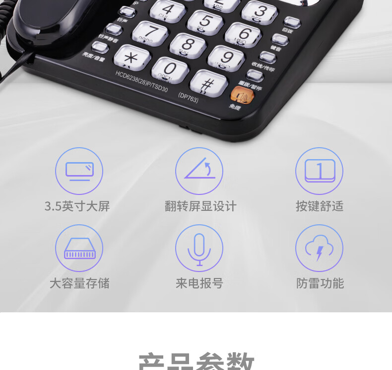 包装清单  :   电话机 DP763 黑 1台