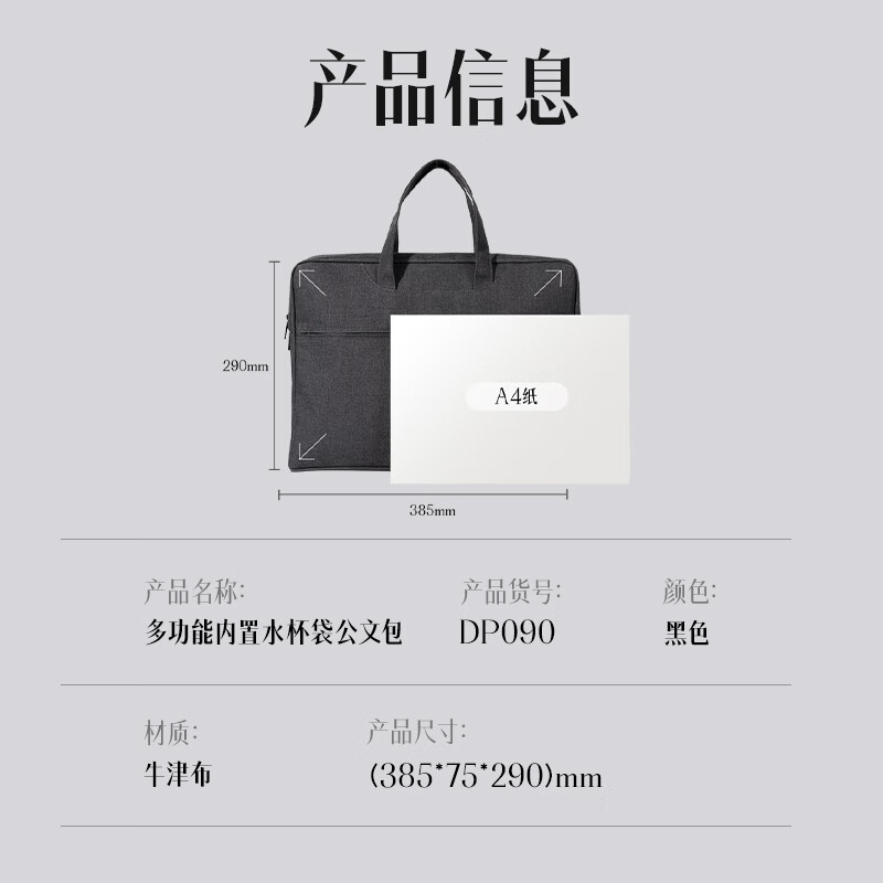 得力/deli DP090 收纳包 多功能内置水杯袋公文包(黑)(个)