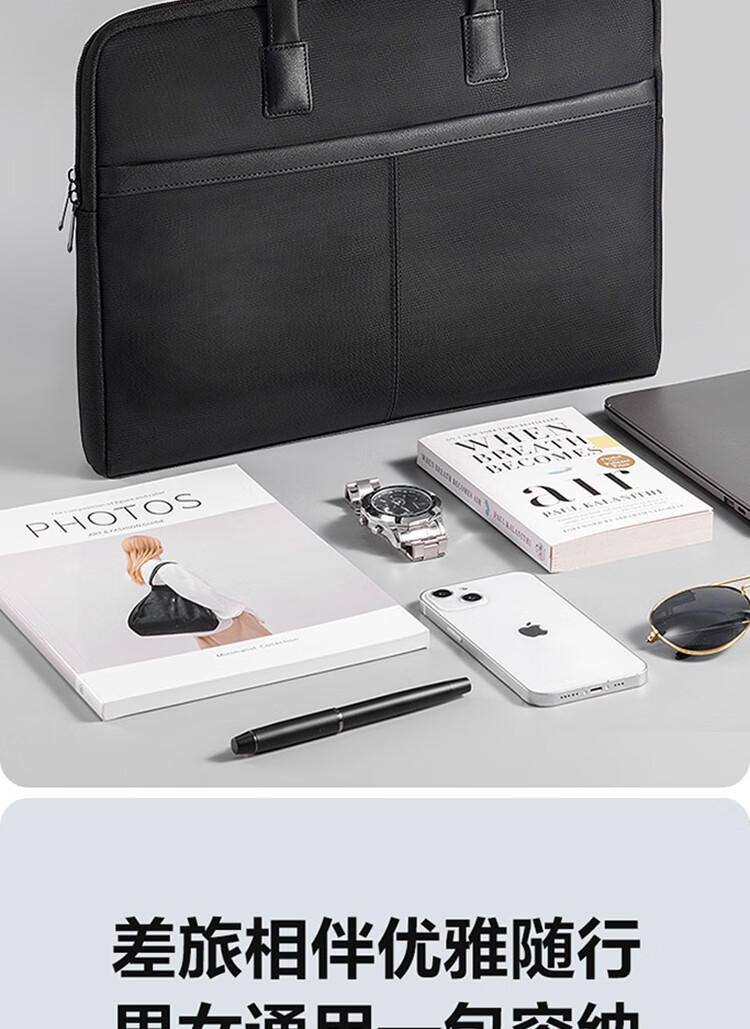得力/deli DP099 收纳包 质感拼接经典商务公文包(黑)(个)