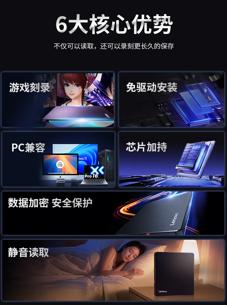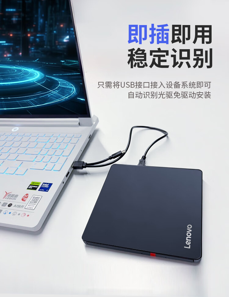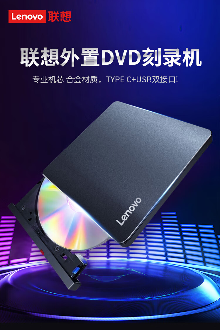 联想/LENOVO DB95pro 光驱 外置光驱8倍速DVD刻录机type-C USB2.0双接口移动刻录机