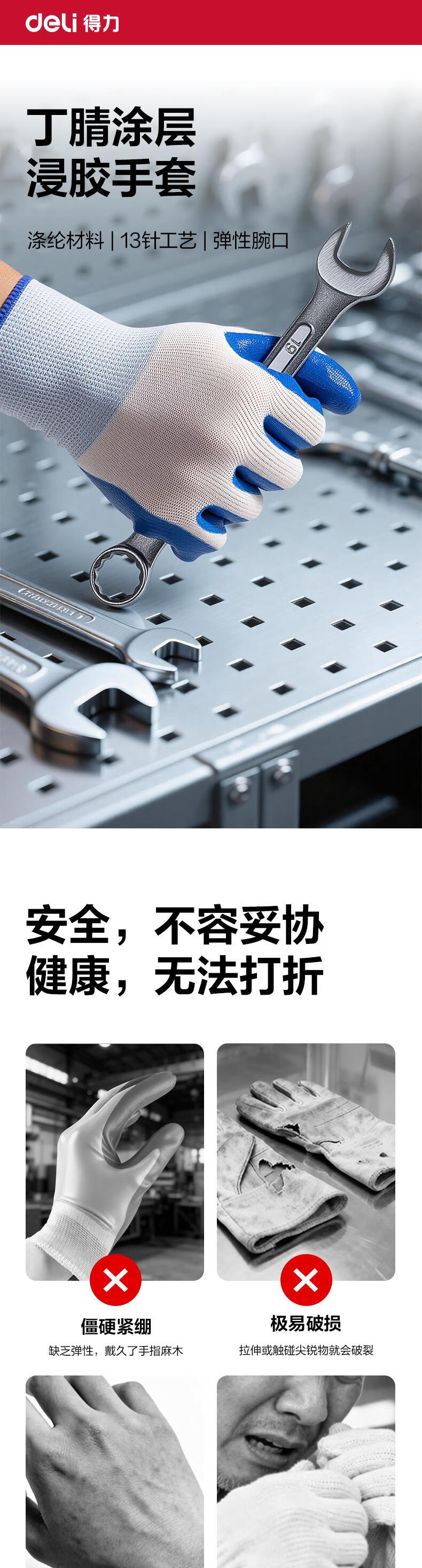 得力/deli LQ626 防滑手套 (均码)(蓝色)(12双/包)