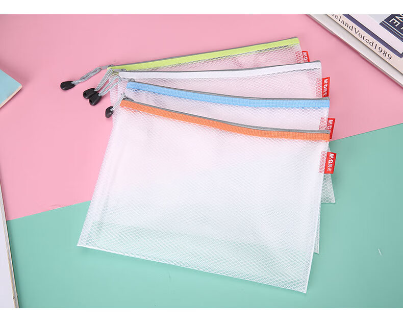 晨光/M&G ADM95077 文件袋 B5文件袋资料袋 网格拉链袋 办公文件学生试卷票据收纳袋 (白橙黄蓝)颜色随机