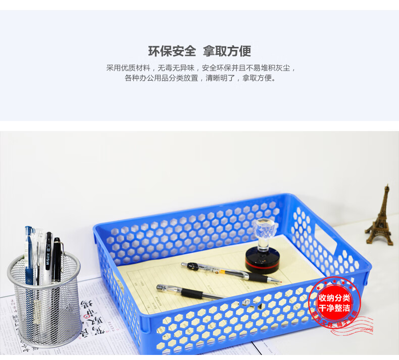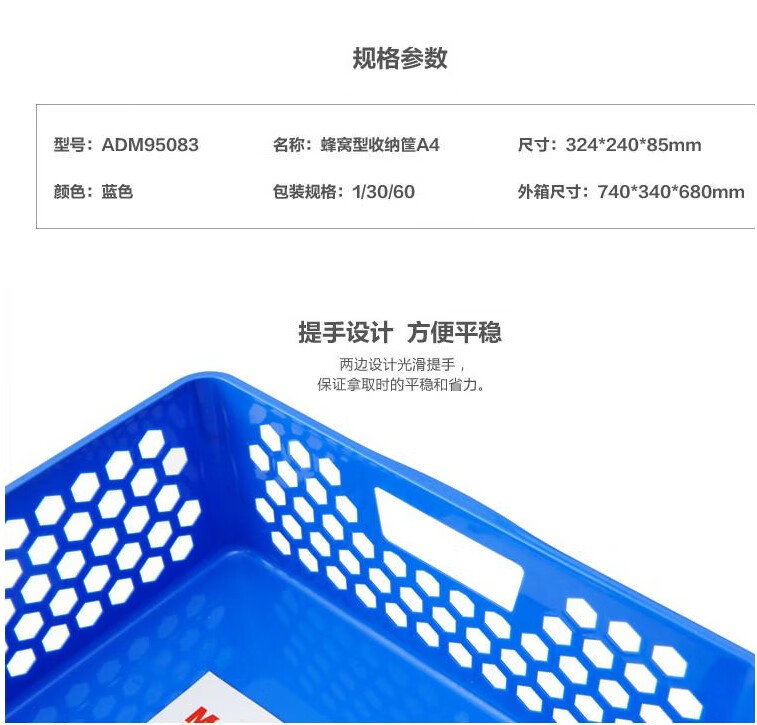 包装清单  :   晨光(M&G)文具发票单据收纳筐A4文件栏办公文件篮资料塑料框凭证筐文件框 蓝色 ADM95083 1个装
