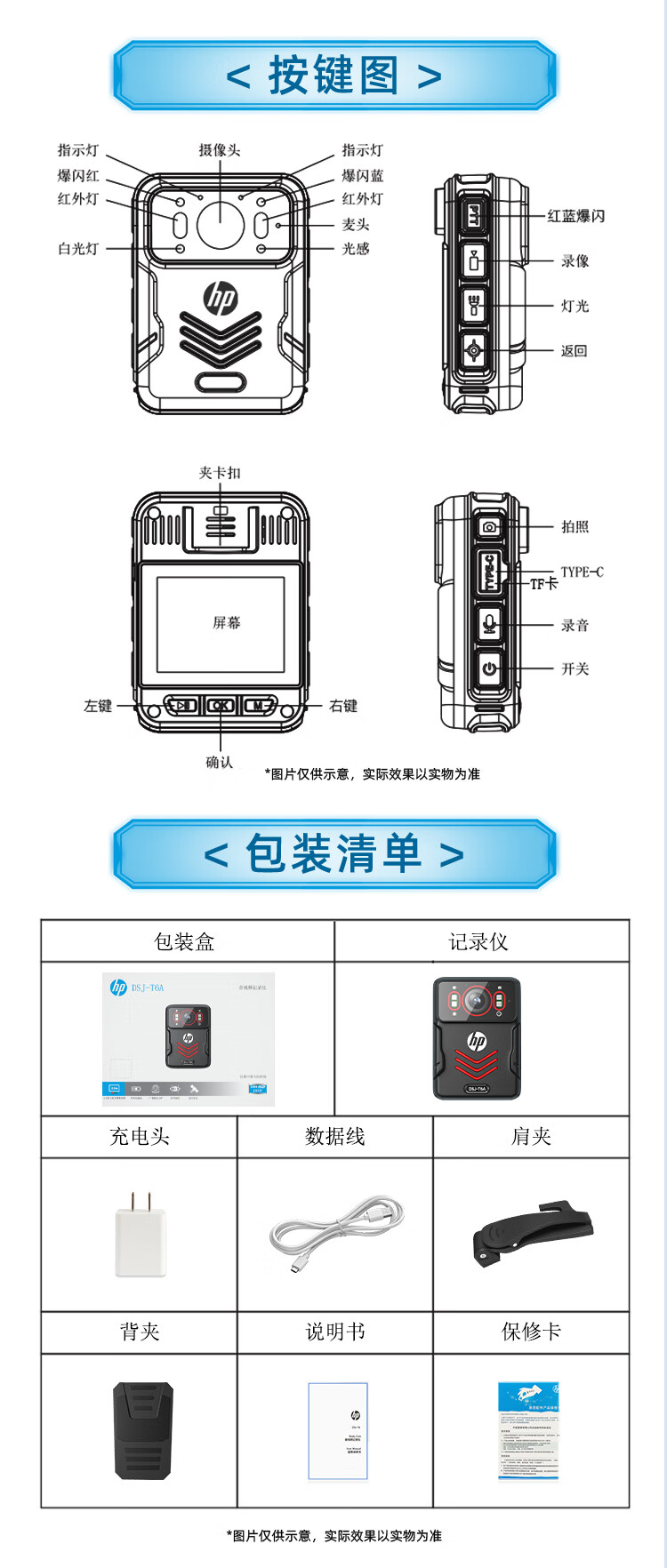 包装清单  :   高清执法记录仪 彩屏版 32G