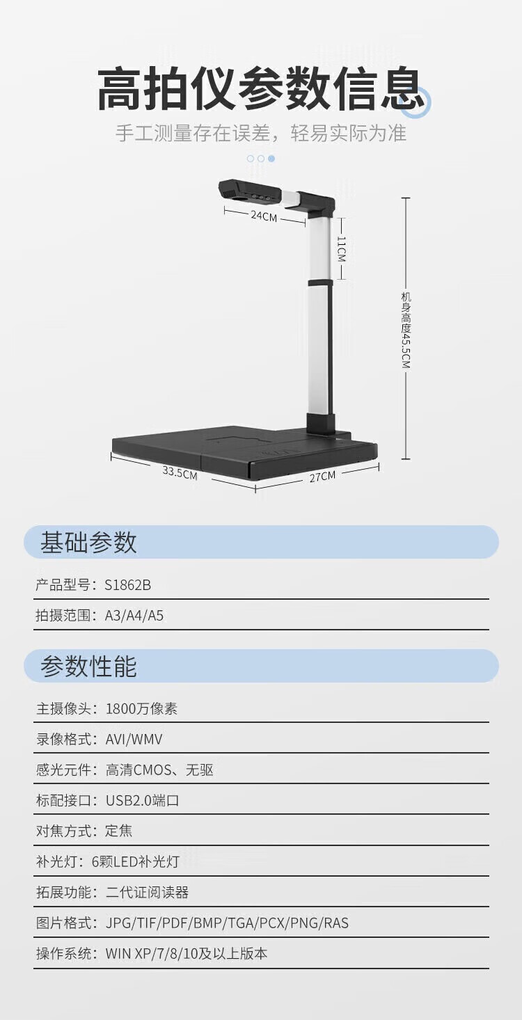 良田/eloam S1862B 高拍仪 1800万像素 A3高速高清连续扫描仪 定焦 文件票据自动纠偏 OCR识别 一秒成像