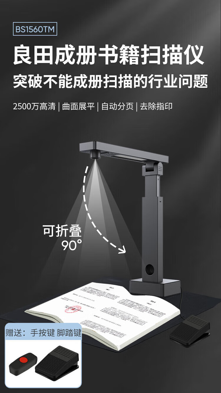 良田/eloam BS1560TM 高拍仪 高速连续A3/A4 不拆书扫描仪2500万高清像素 发票文件书籍曲面展平