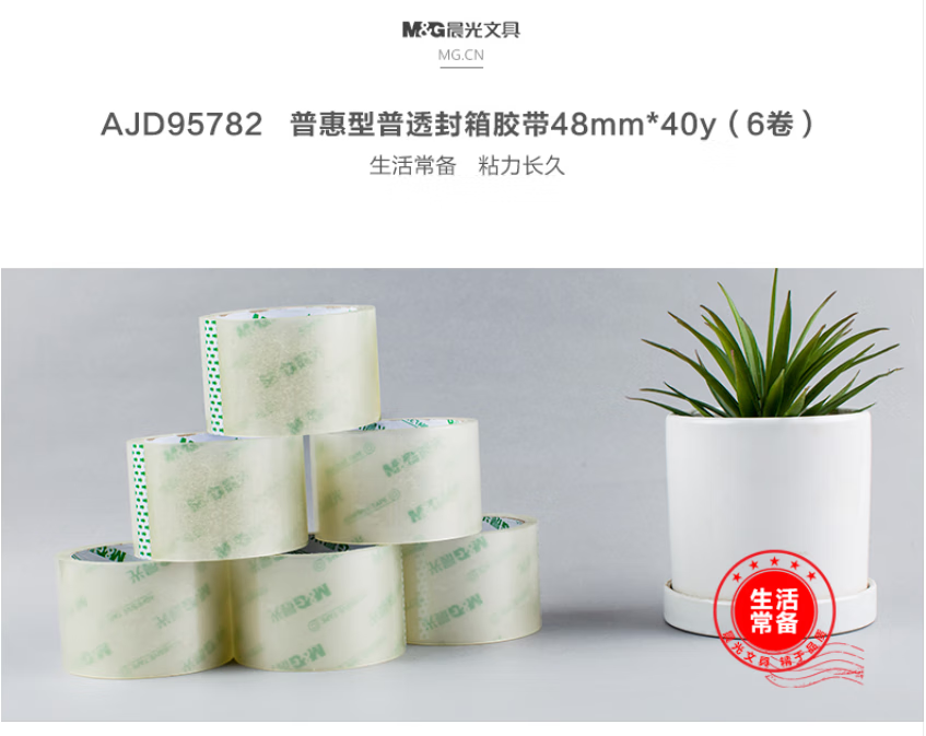 晨光/M&G AJD95782 胶带 48mm*40y透明封箱胶带打包胶带大胶布高透明封箱胶布胶条AJD95782 6卷