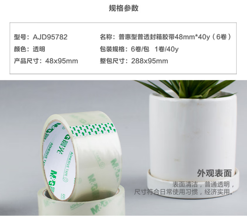 包装清单  :   48mm*40y透明封箱胶带打包胶带大胶布高透明封箱胶布胶条AJD95782 6卷