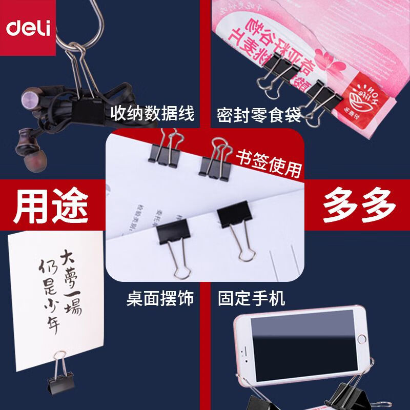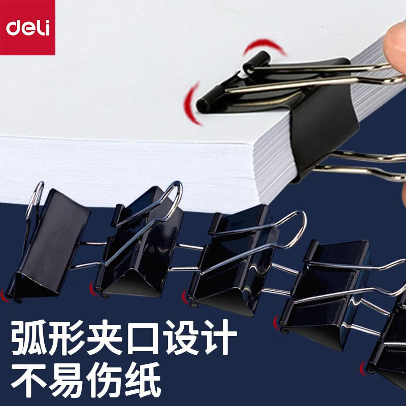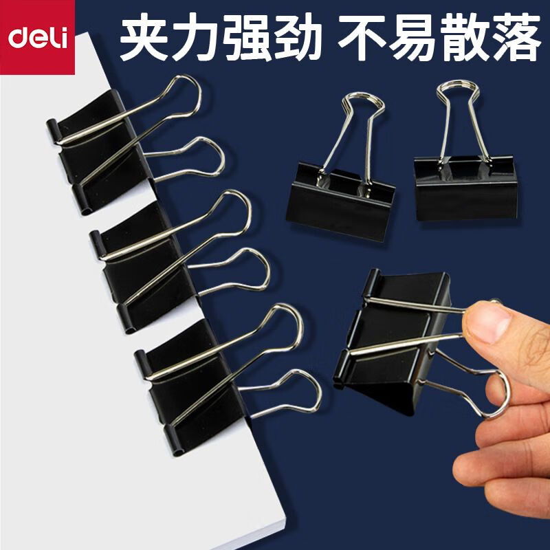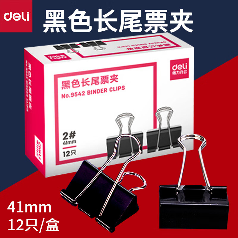 得力/deli 9542 长尾夹 黑色票夹 燕尾夹41mm 铁票夹 铁夹子 41mm 12只/盒 黑色