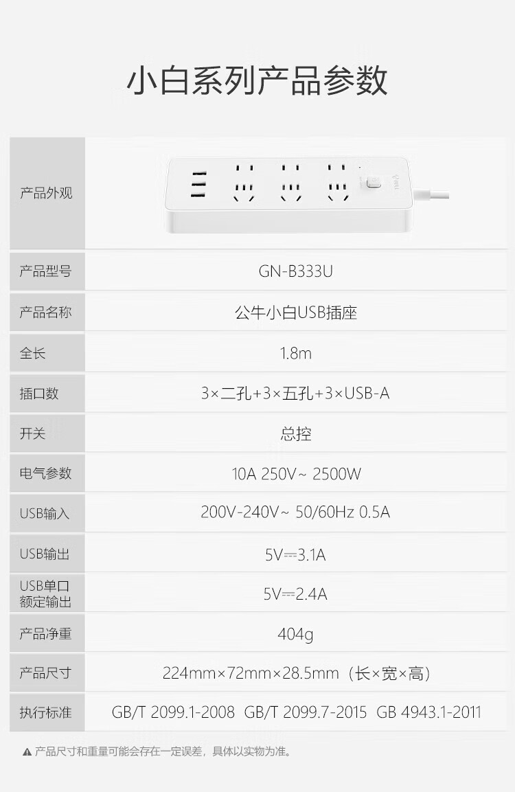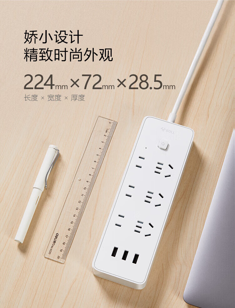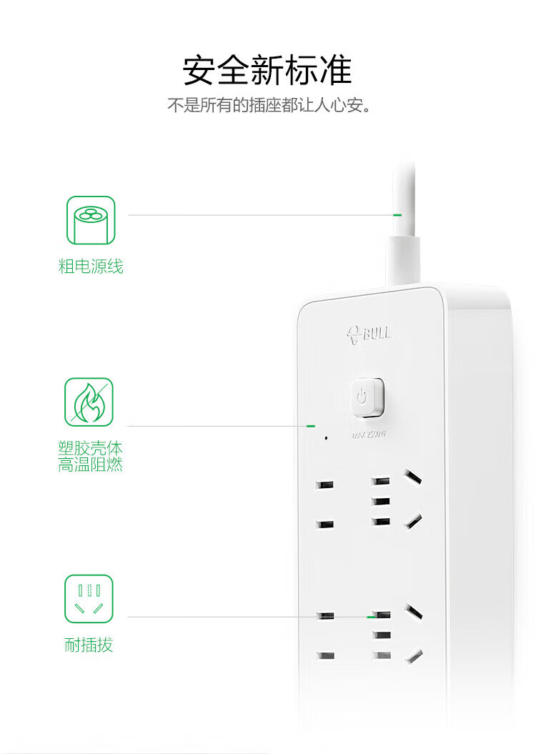 公牛/BULL GNV-UUB126 插座 新国标公牛小白USB插座/插线板/插排/排插 3USB+6位总控全长3米