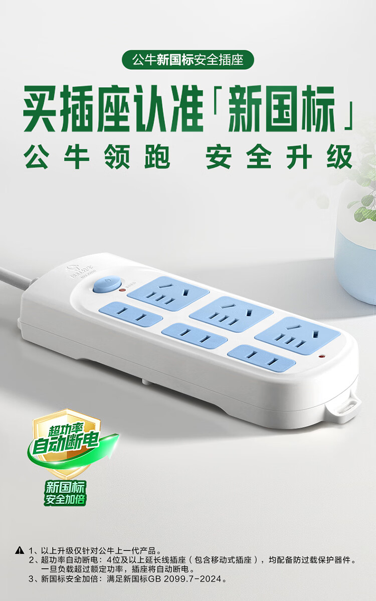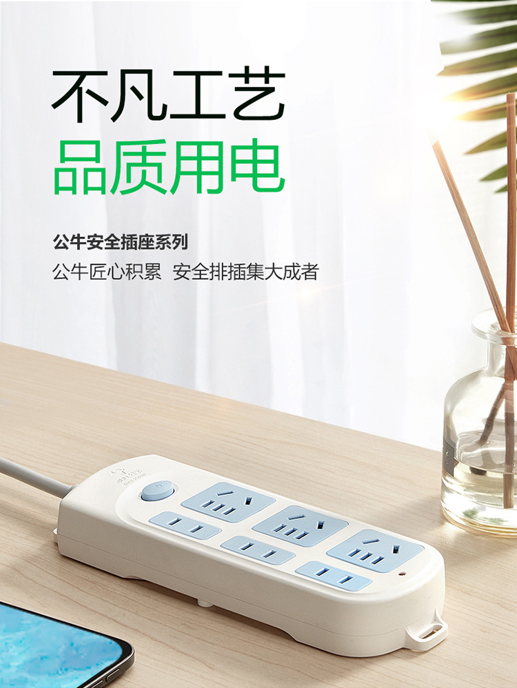 公牛/BULL GN-609 插座 插座/插线板/插排/排插/接线板/拖线板 GN-609 6位总控全长3米
