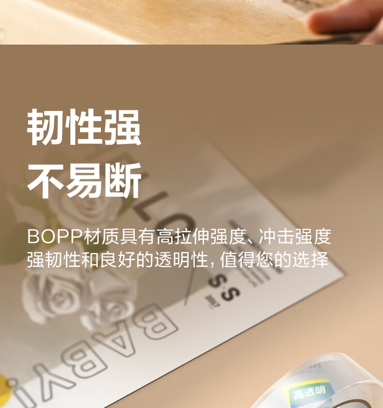 产品材质  :   BOPP高品质高透明封箱胶带打包胶带24mm*40y*50um 单卷装