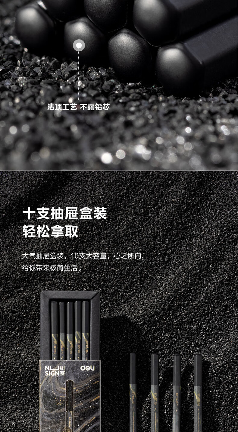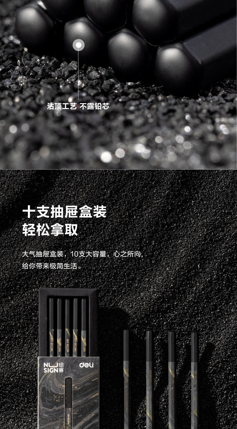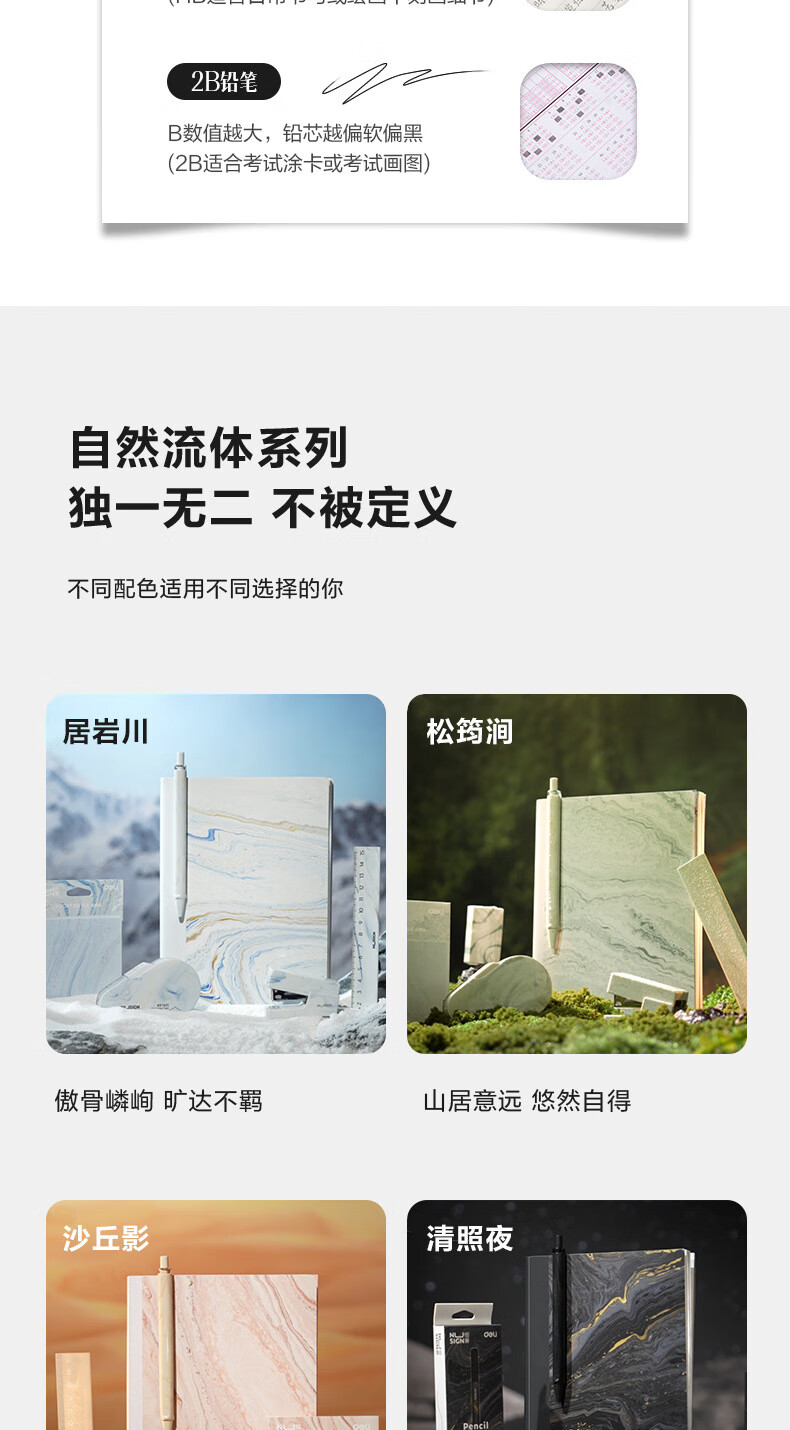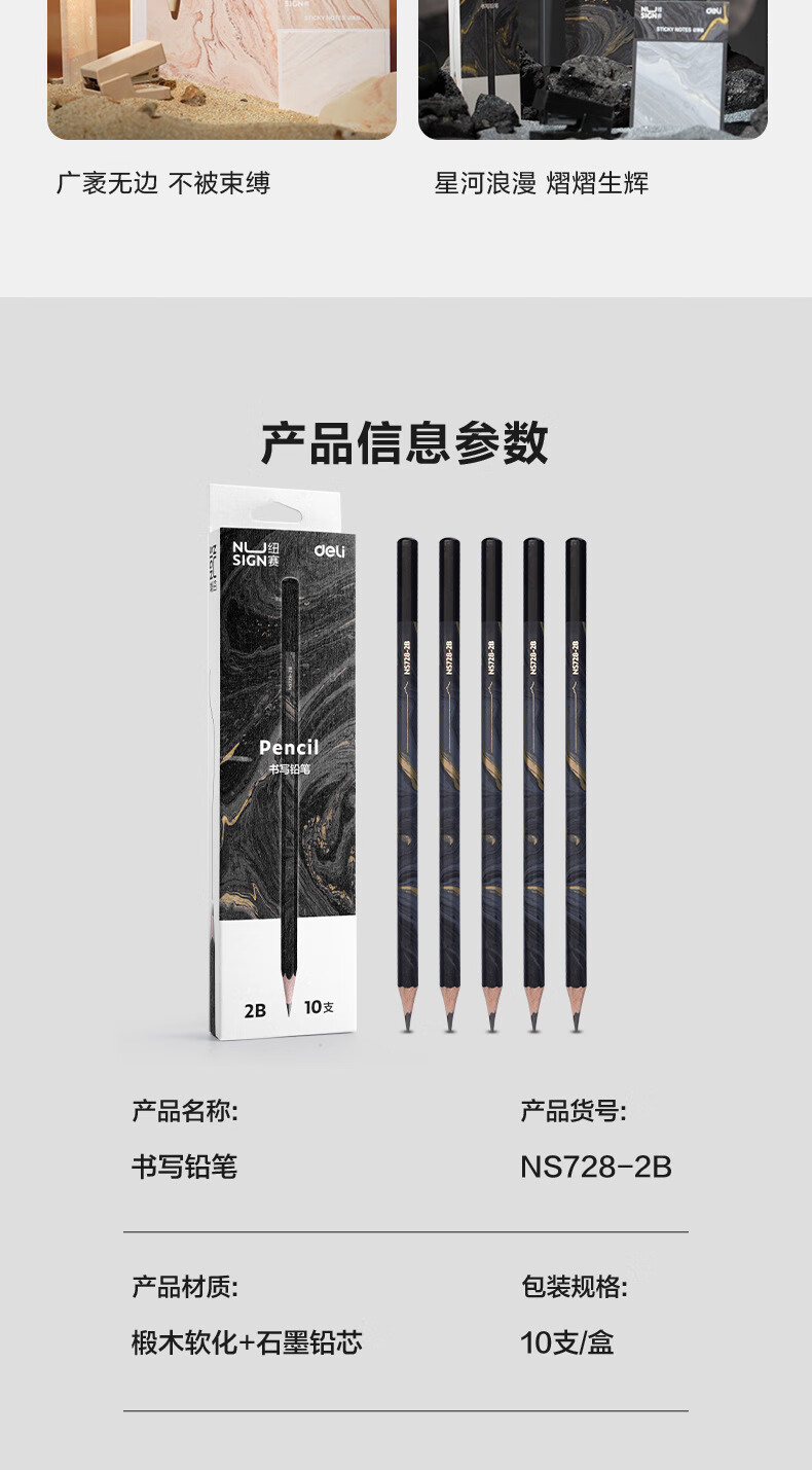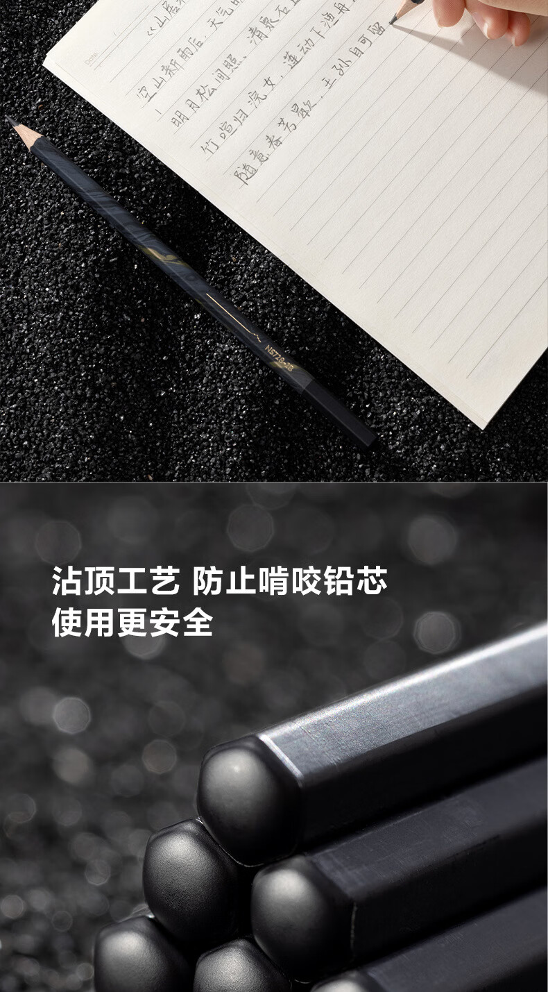 包装清单  :   纽赛自然流体六角杆HB/2B黑木铅笔学生铅笔考试用 NS728-HB自然流体 (混)(10支/盒)