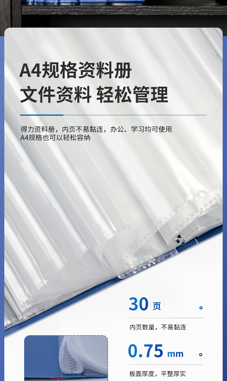 容纸量  :   a4透明插页袋资料收集册文件夹资料夹收纳夹办公用品多层整理塑料档案蓝色 【30页】高档磨砂款