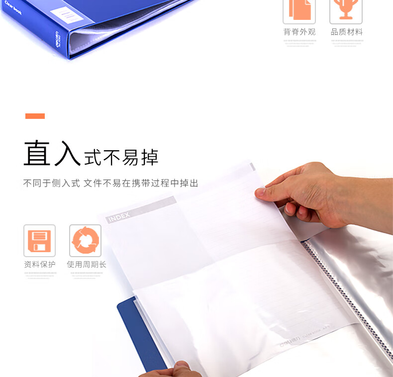 得力/deli 5060 文件夹 A4/60页资料册文件活页收纳册文件夹 插页袋学生试卷收纳袋奖状收集册孕检收纳册文件保护