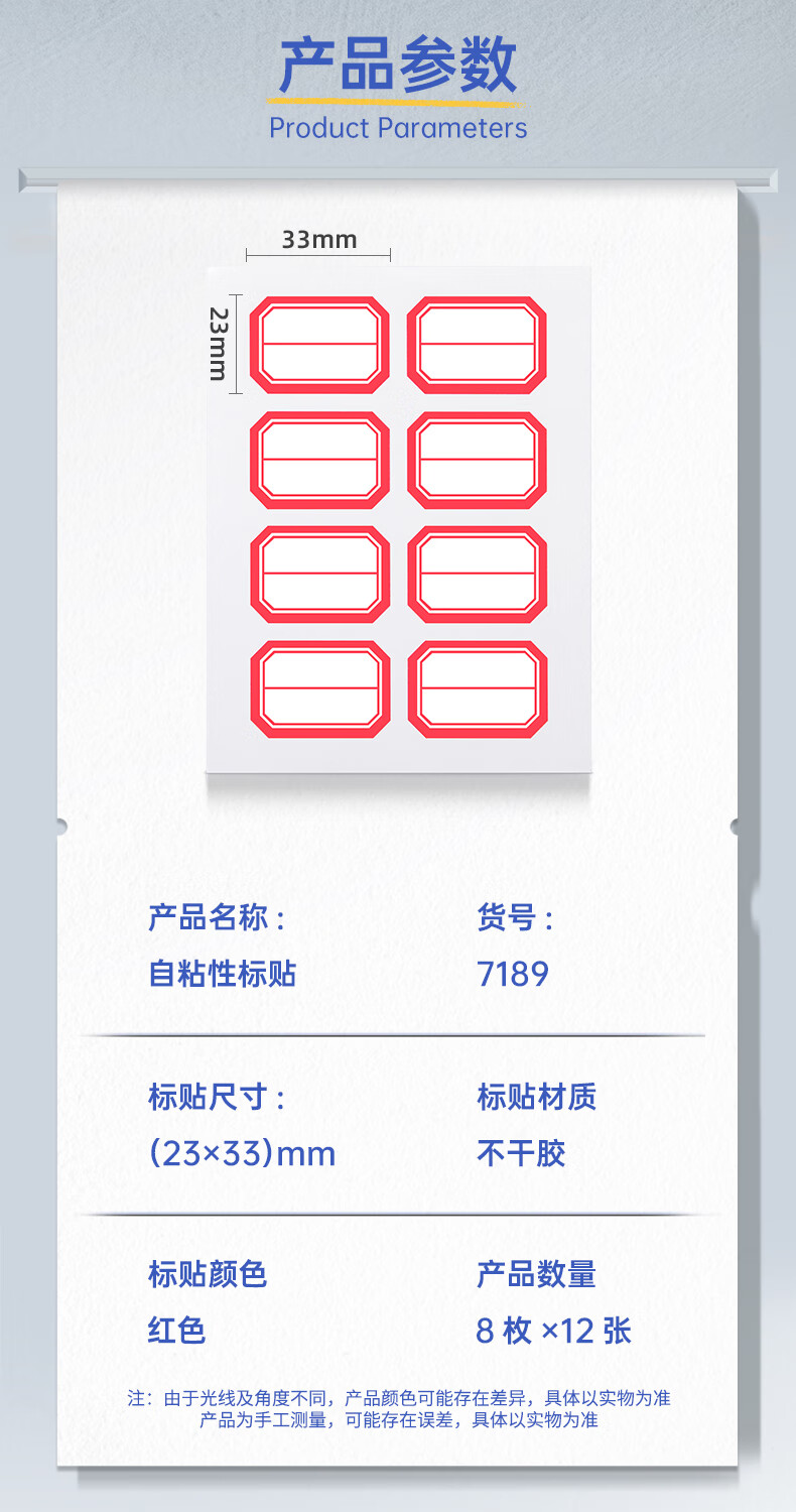包装清单  :   96枚23*33mm红框不干胶标签贴纸便利贴自粘性标贴姓名贴