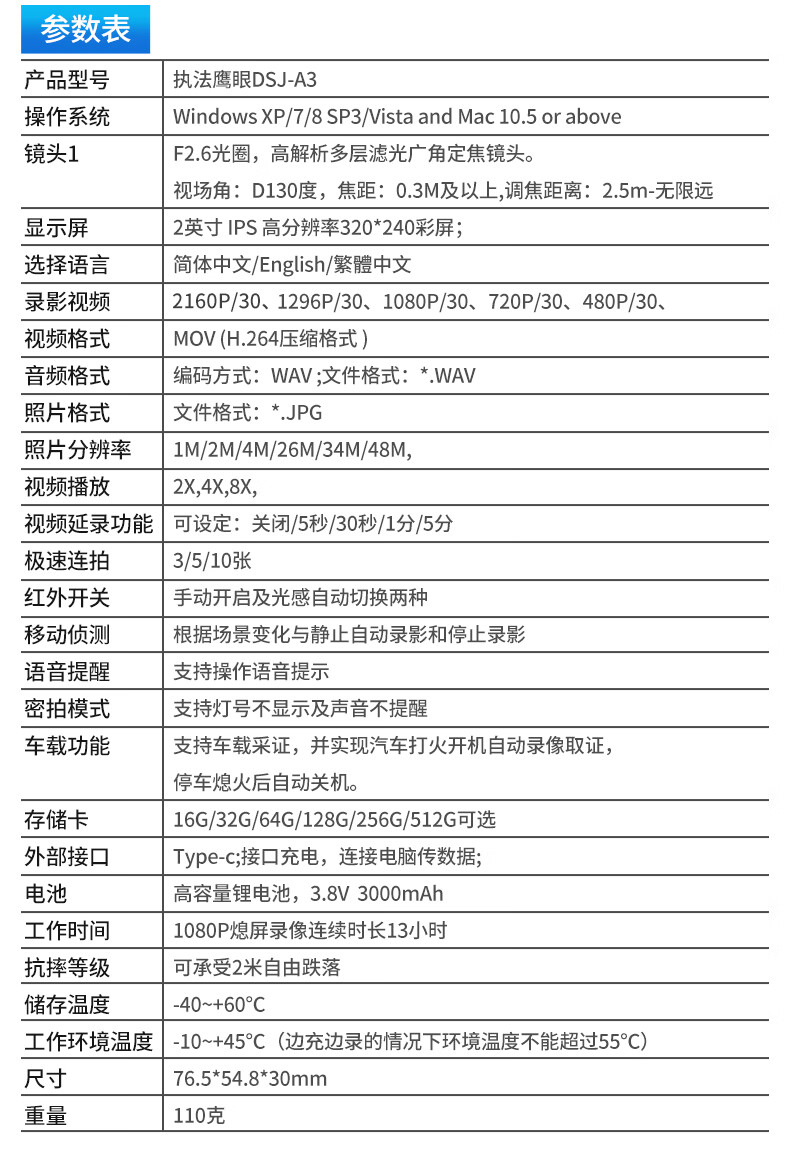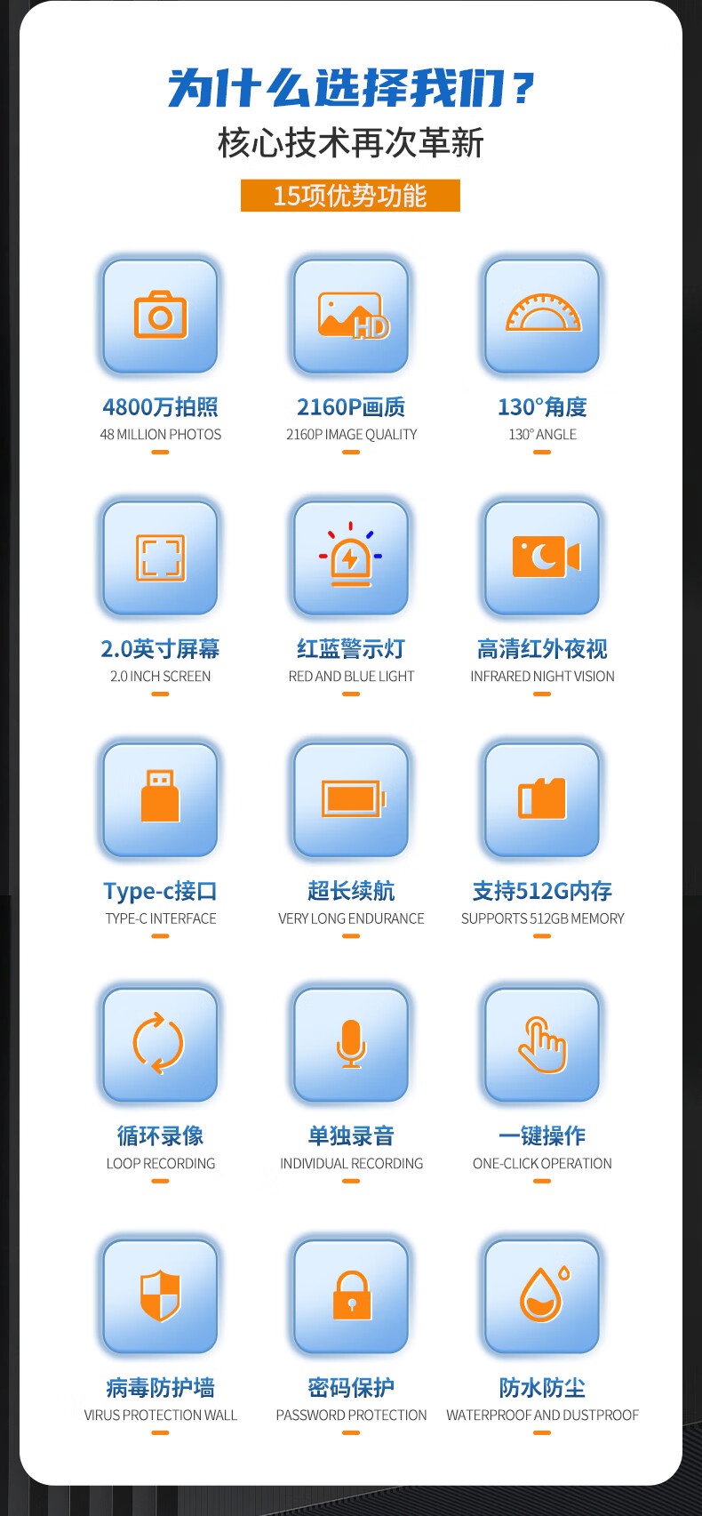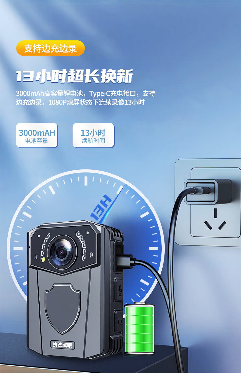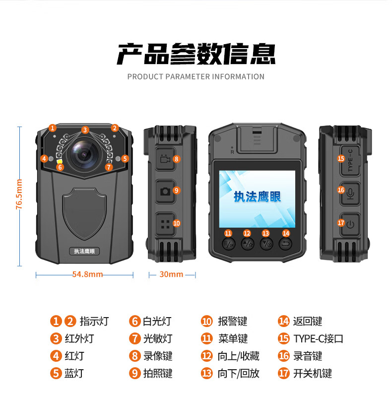 产品材质  :   执法记录仪高清红外夜视现场拍摄音视频录制取证128G内存版