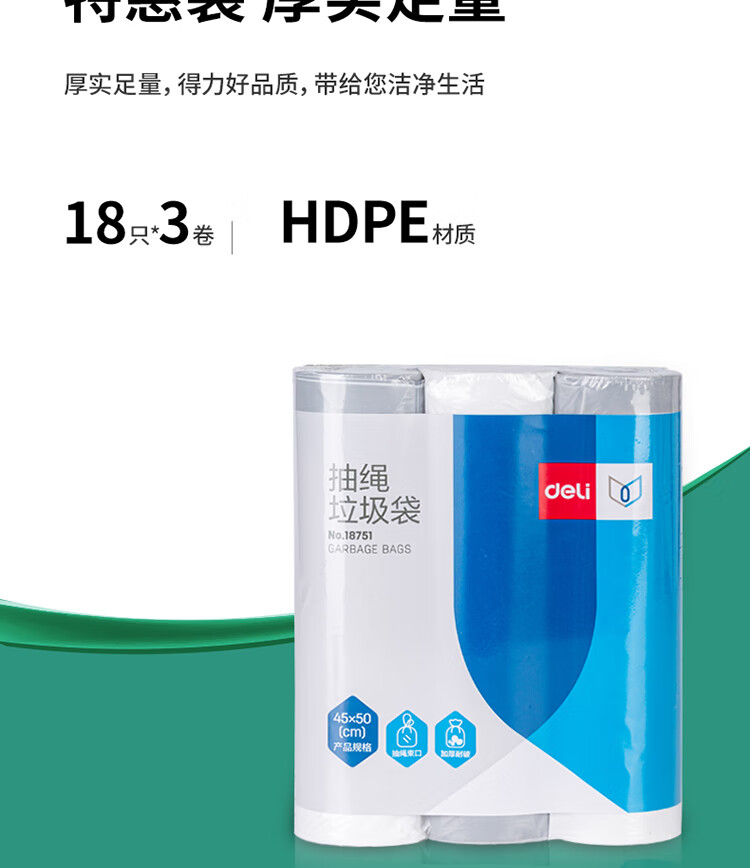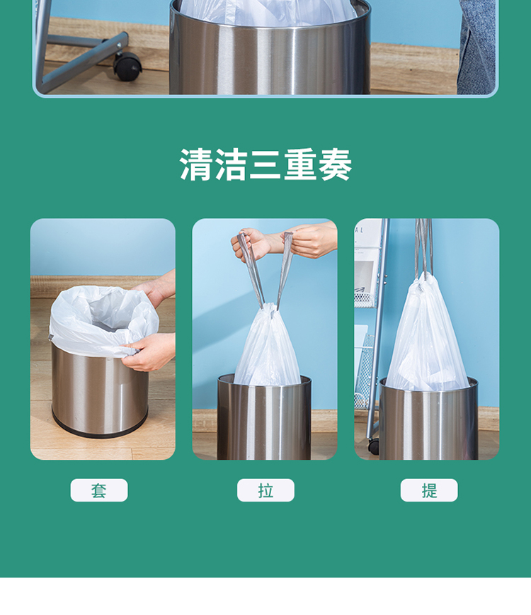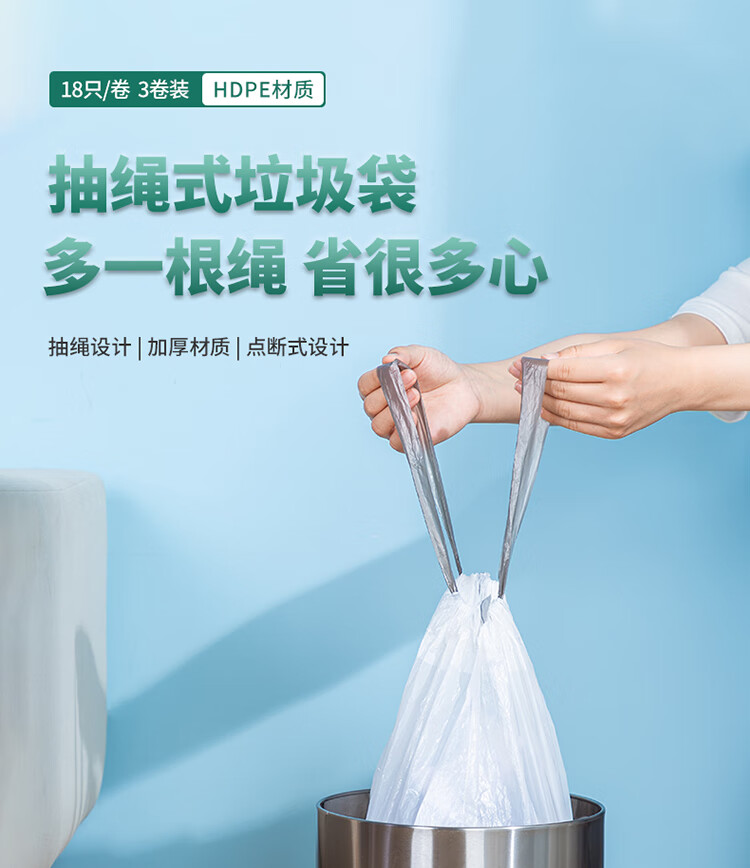 用途  :   45*50cm抽绳式垃圾袋便携牢固加厚大容量办公宿舍耐用量多垃圾收纳 3卷装 白色