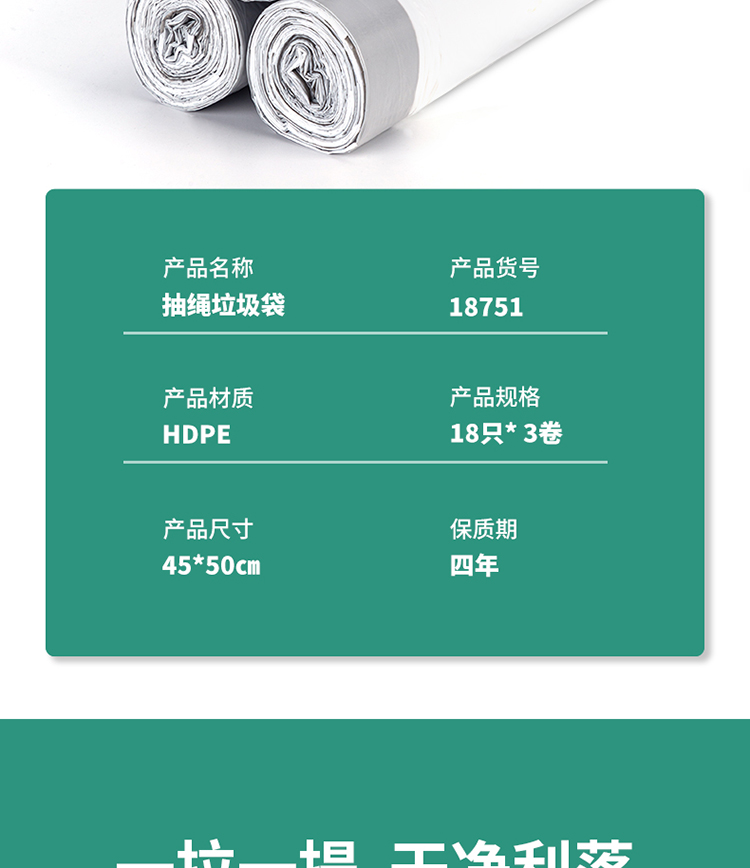 包装清单  :   3卷*白色装抽绳垃圾袋