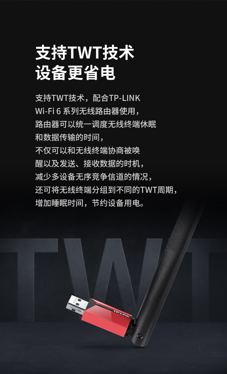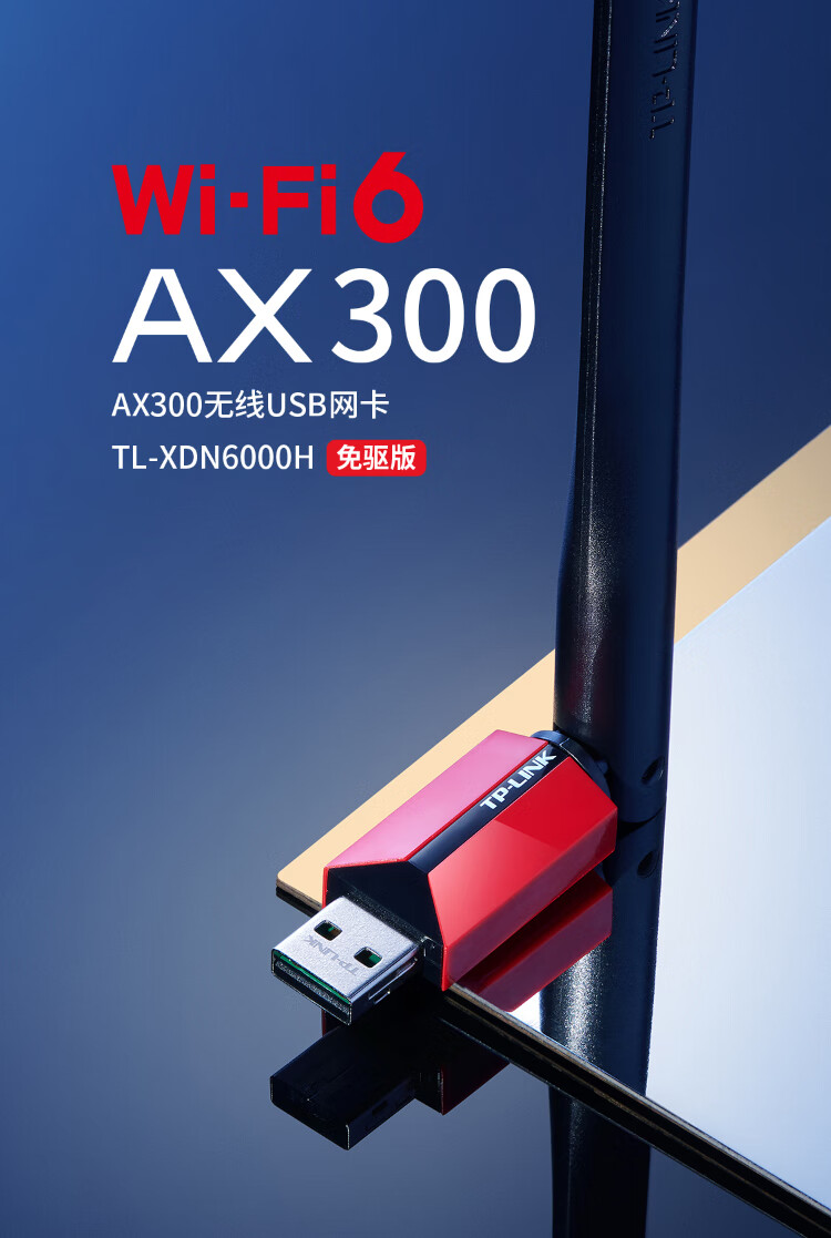 普联(TP-LINK) 迷你USB无线网卡免驱动 台式机笔记本电脑随身wifi信号发射接收器 【300M外天线-WiFi6】XDN6000H免驱