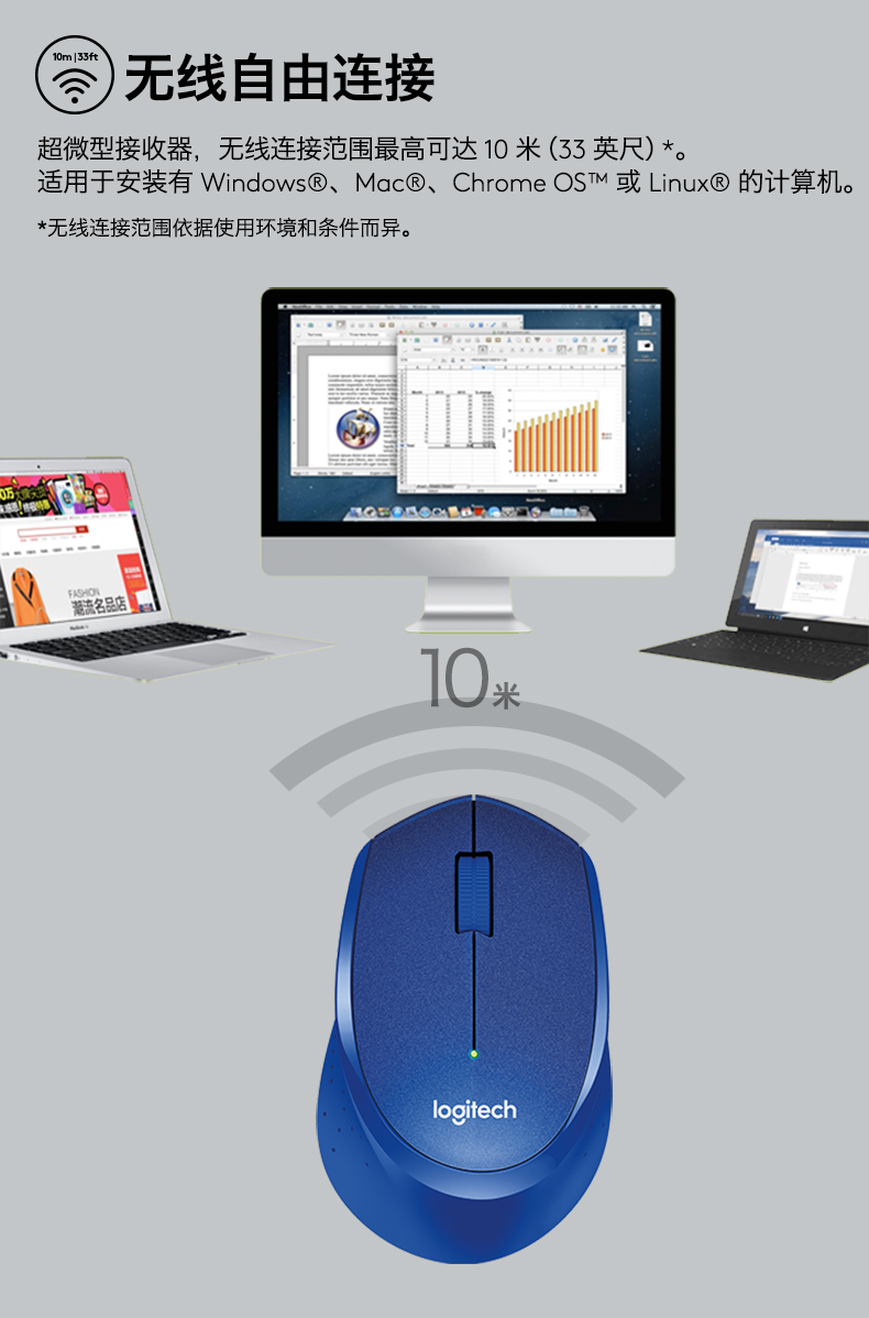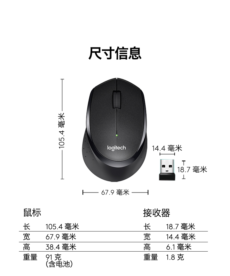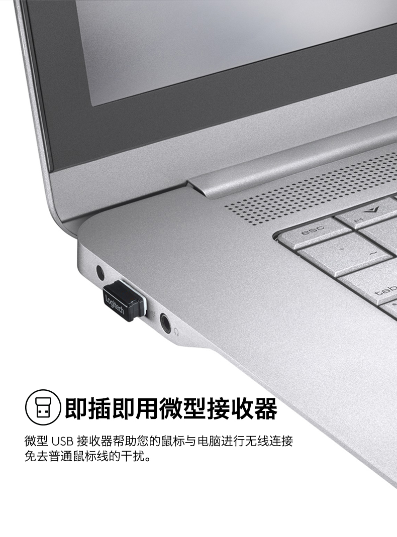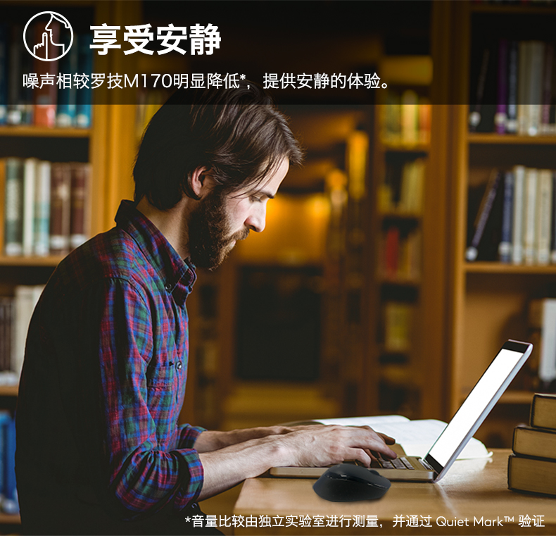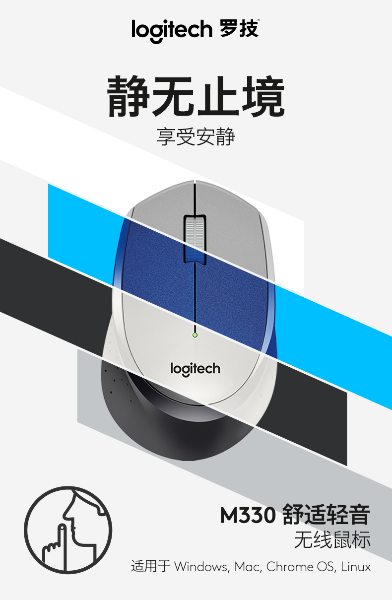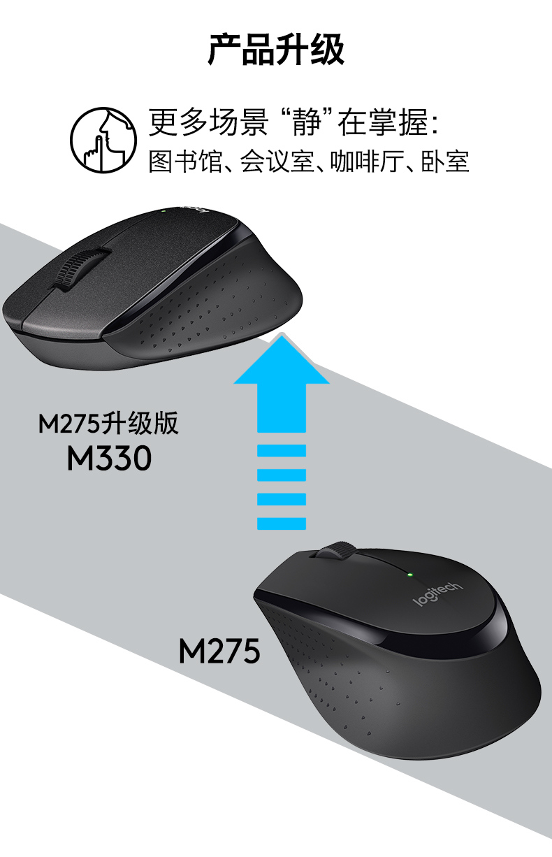 罗技/Logitech M330 鼠标 右手鼠标 带无线微型接收器 黑色