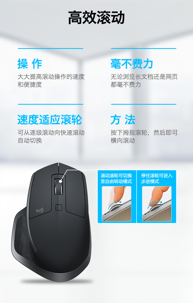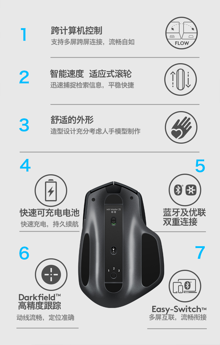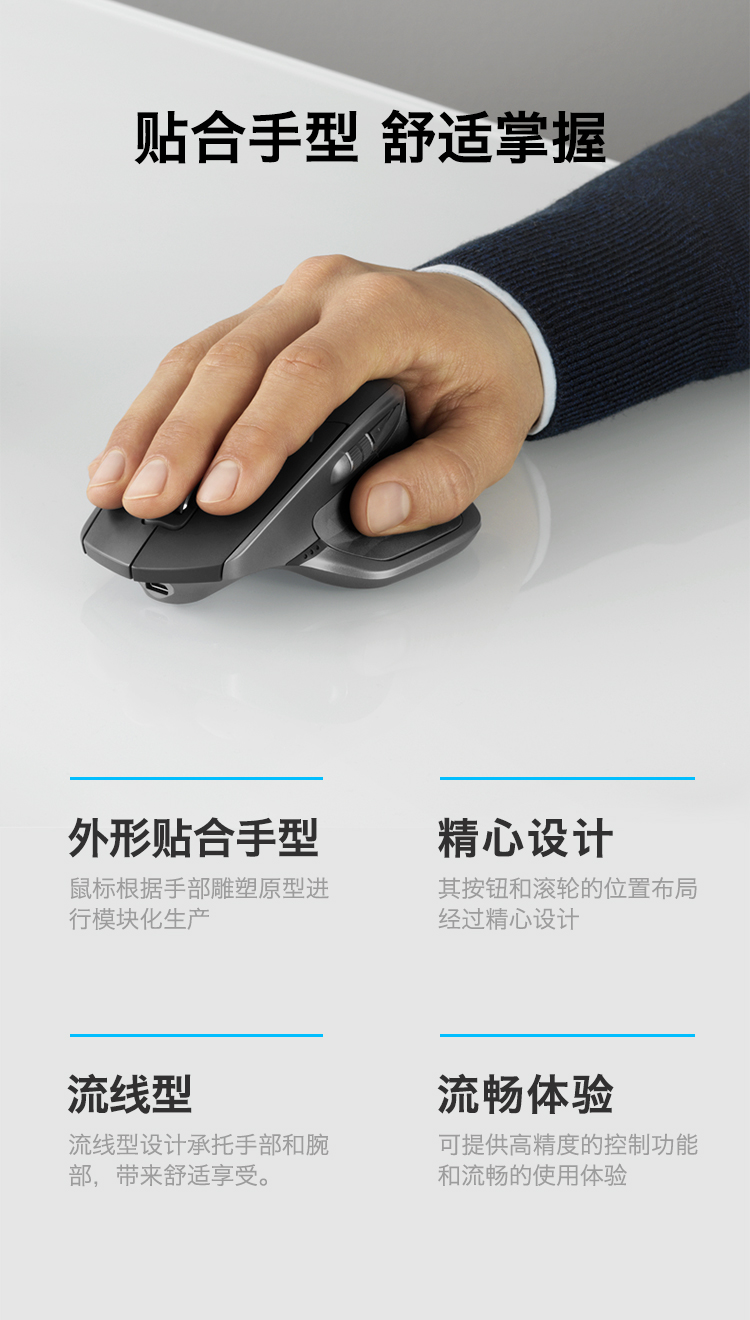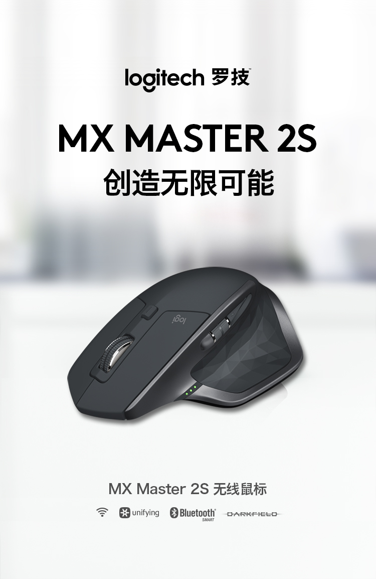 罗技/Logitech MX Master 2S 鼠标 儒雅黑 带无线2.4G接收器