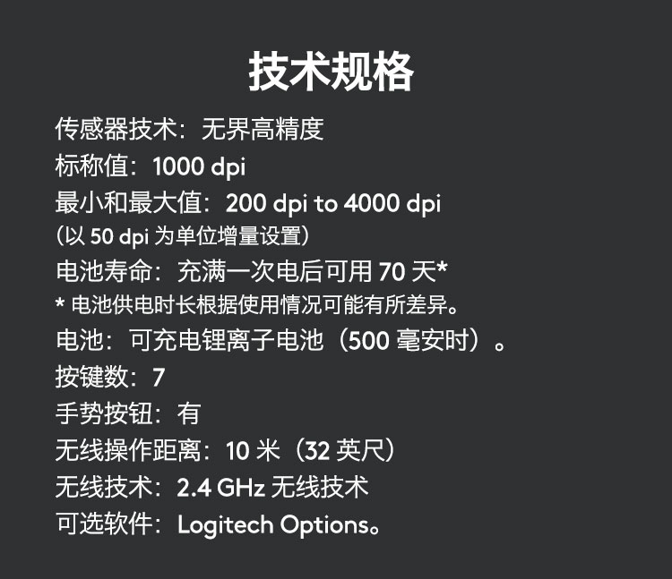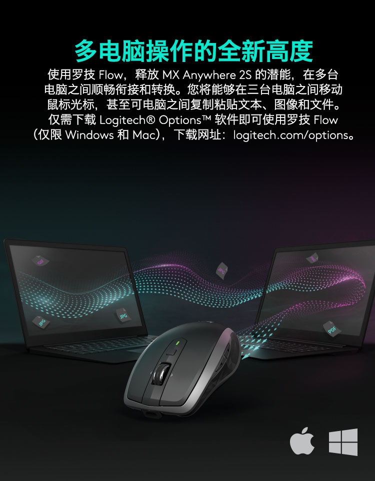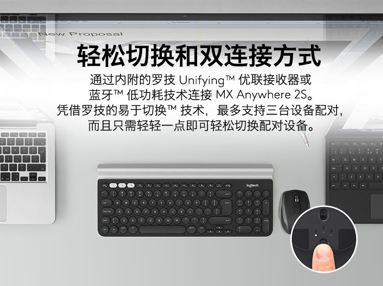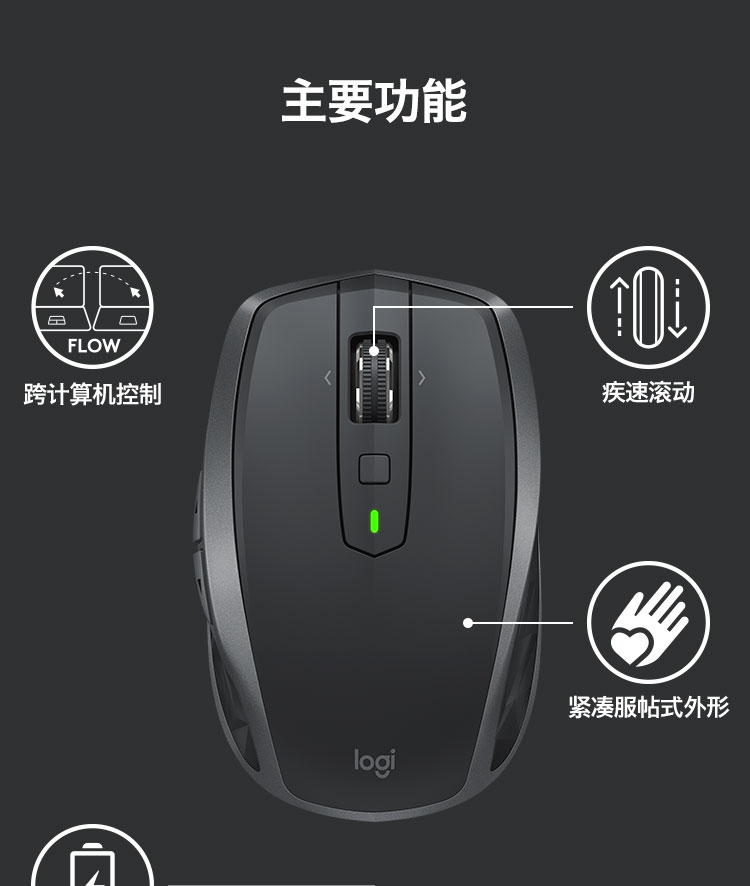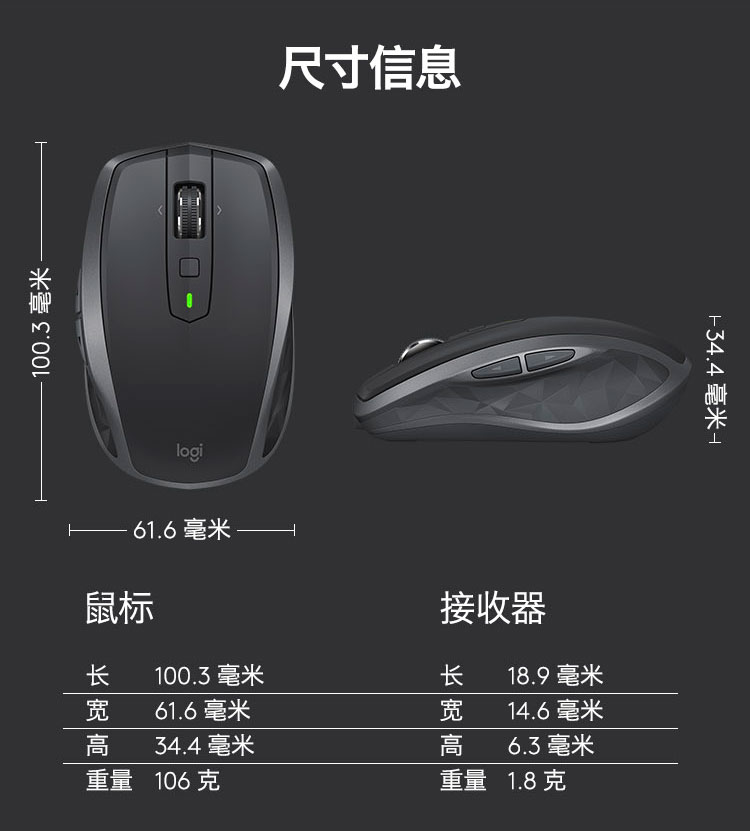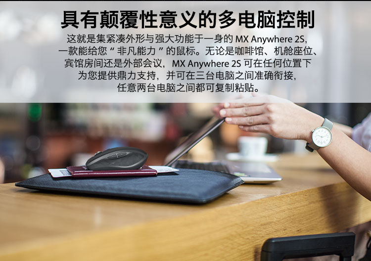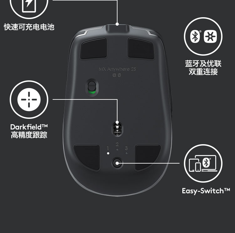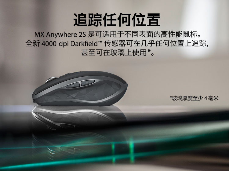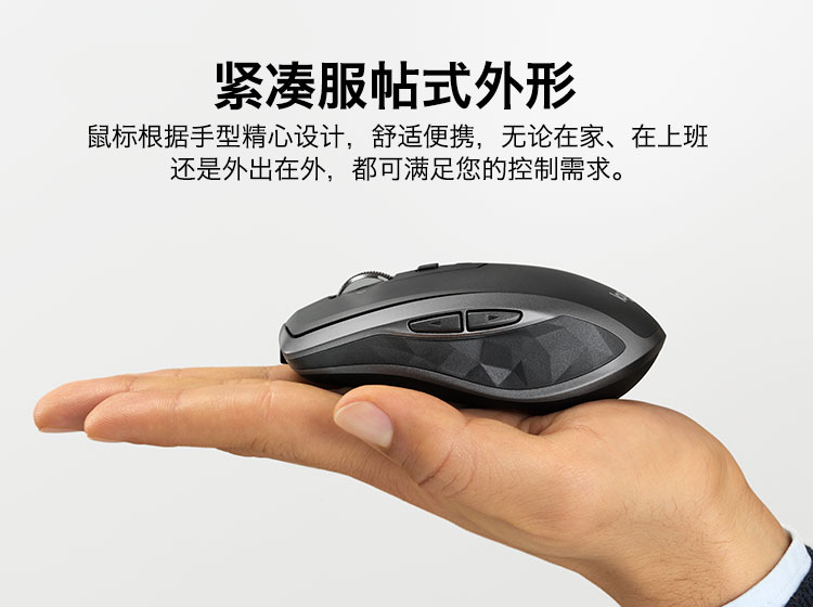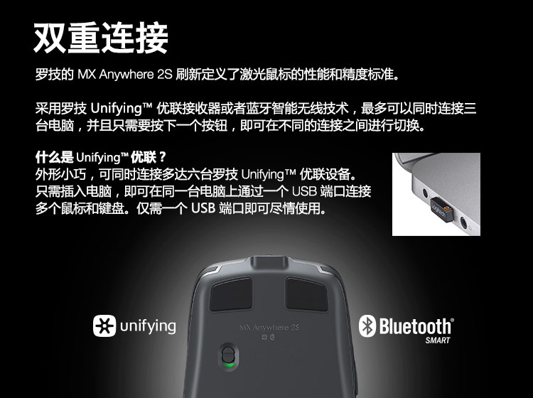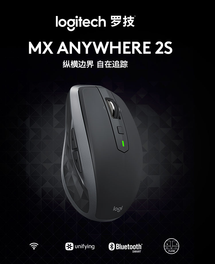 罗技/Logitech MX Anywhere 2S 鼠标 优联 儒雅黑 带无线2.4G接收器