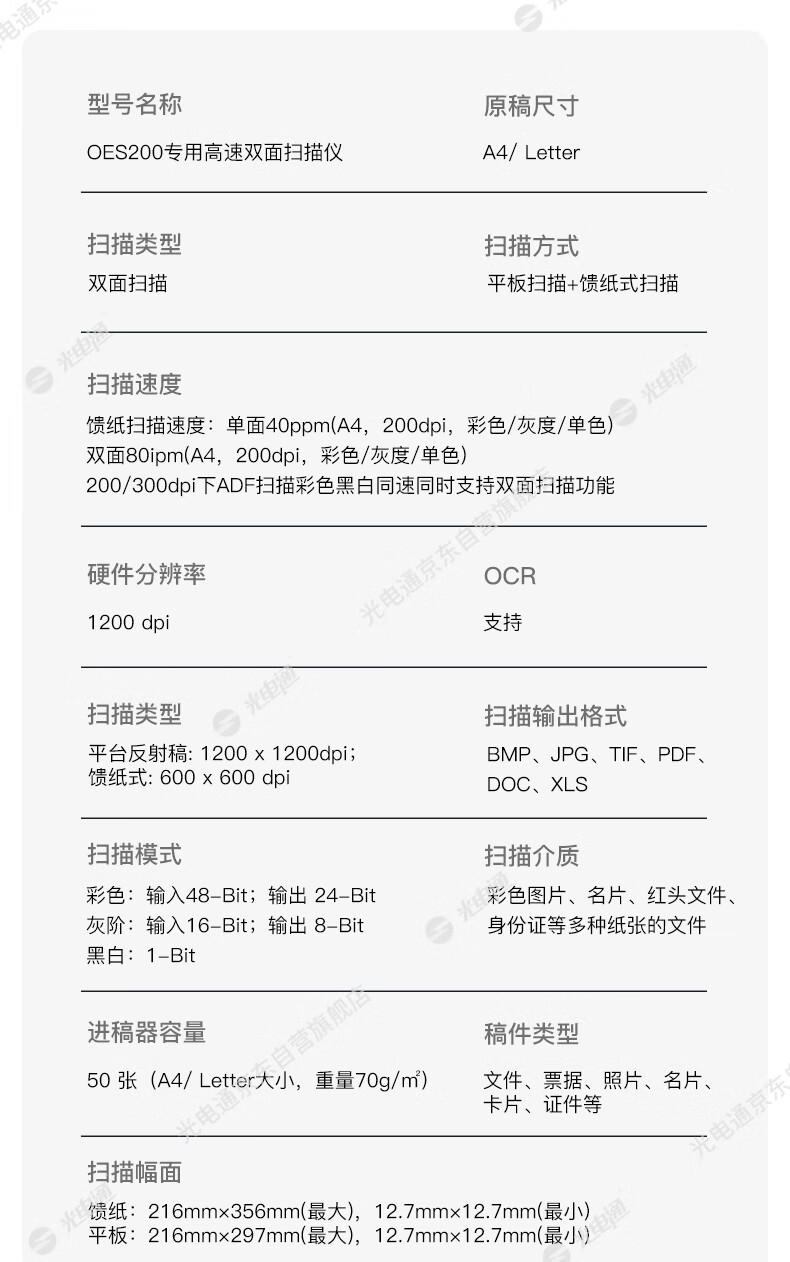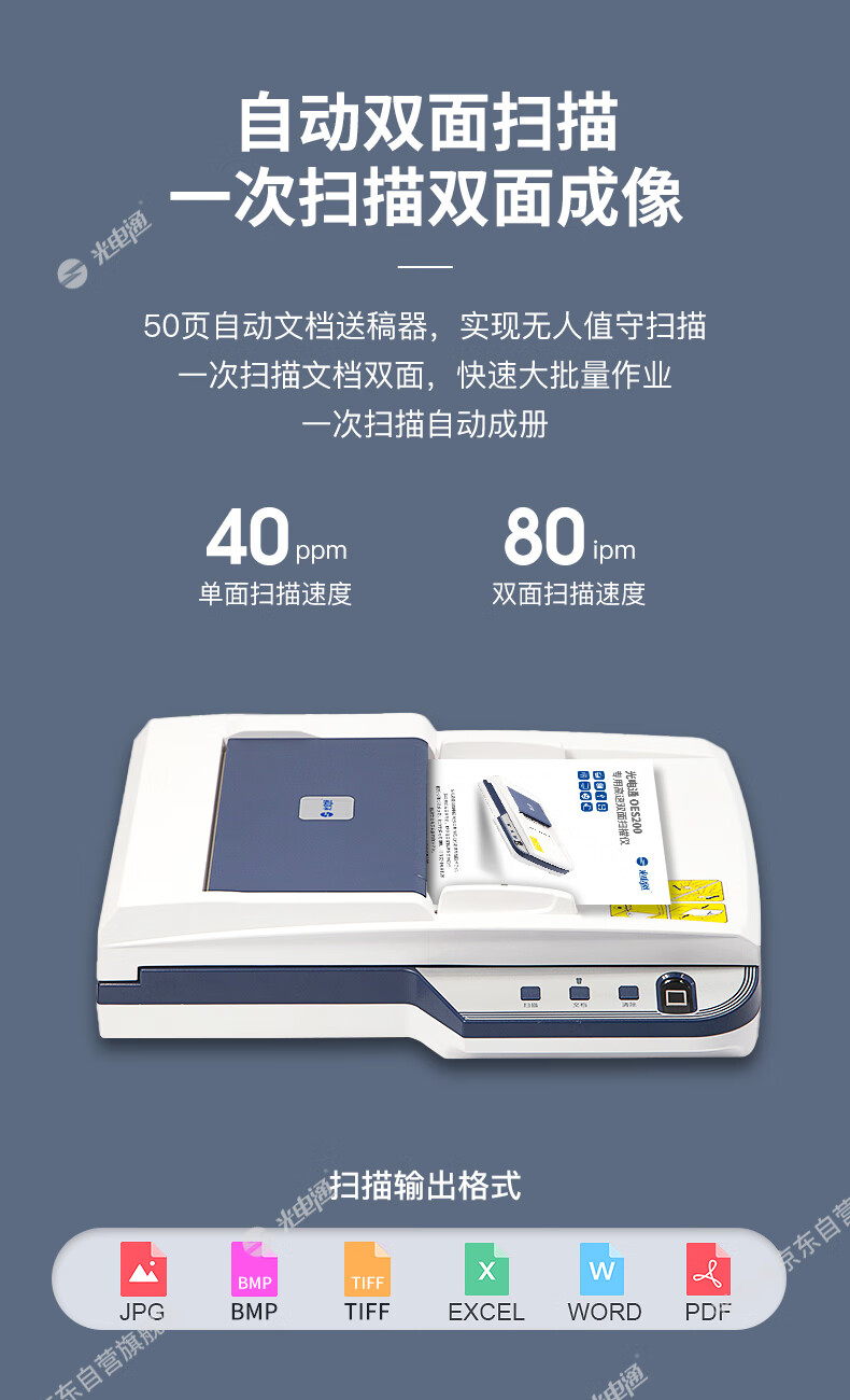 ADF彩色双面扫描速度(A4,200dpi)  :   40