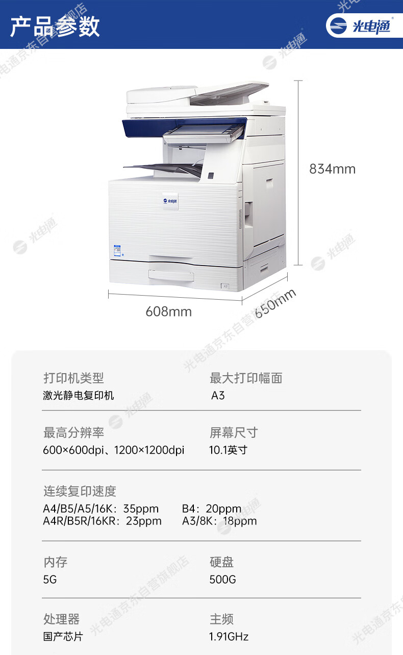 A4复印速度(彩色)  :   20