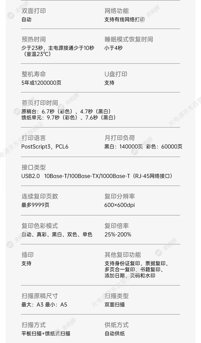 A4复印速度(黑白)  :   20