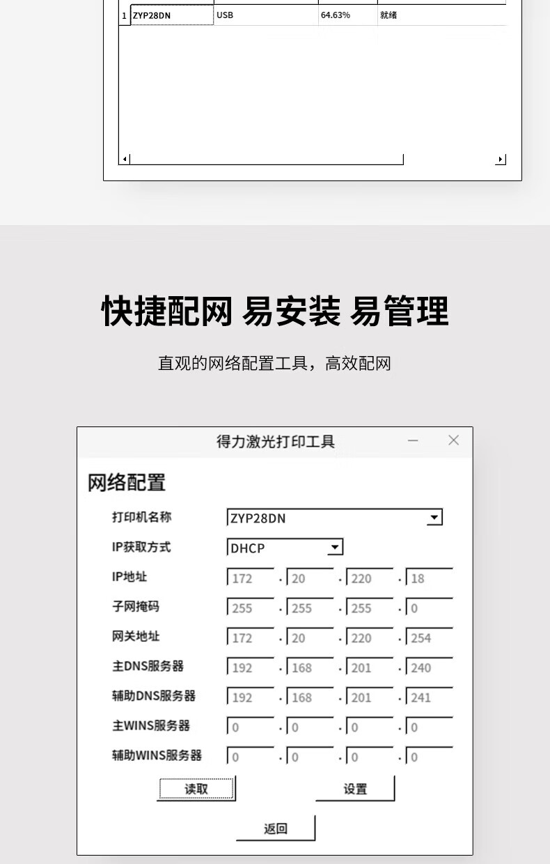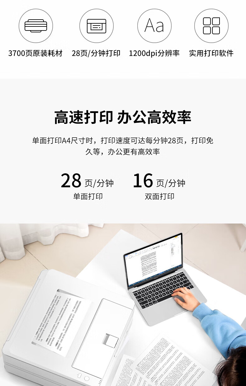 包装清单  :   打印机x1、产品安全手册x1、快速入门说明书x1、随机光盘x1、电源线x1、USB线x1、保修卡x1