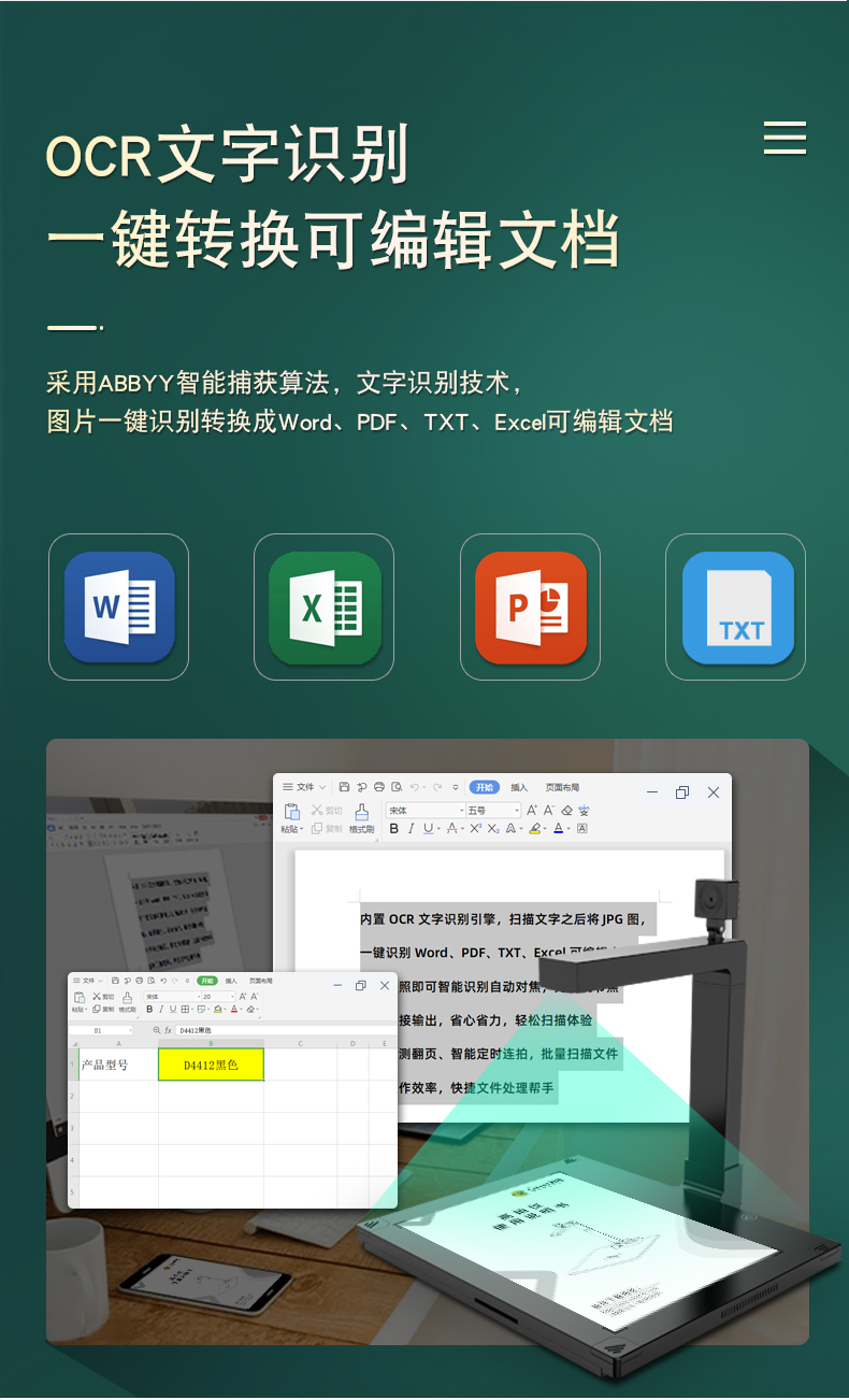 ADF彩色双面扫描速度(A4,200dpi)  :   100
