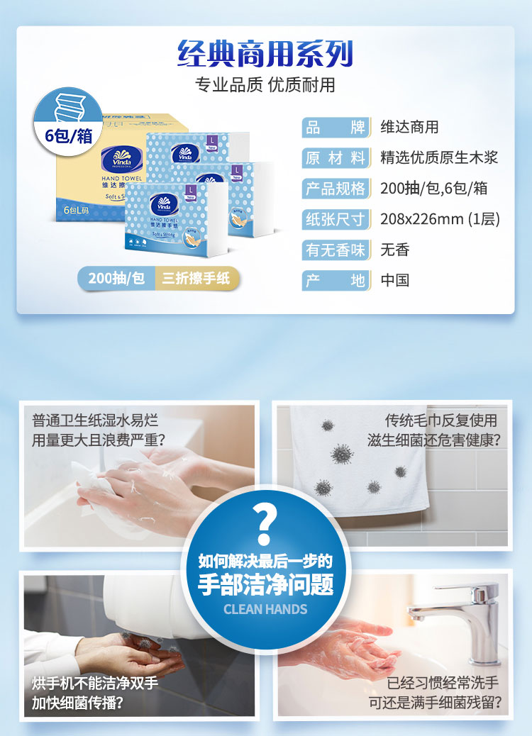 包装清单  :   维达(Vinda) 抽纸 200抽*6包