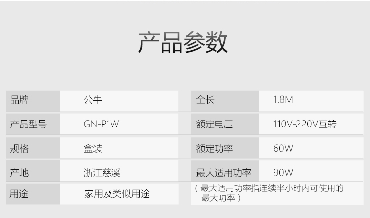 电源线长度(m)  :   1.8