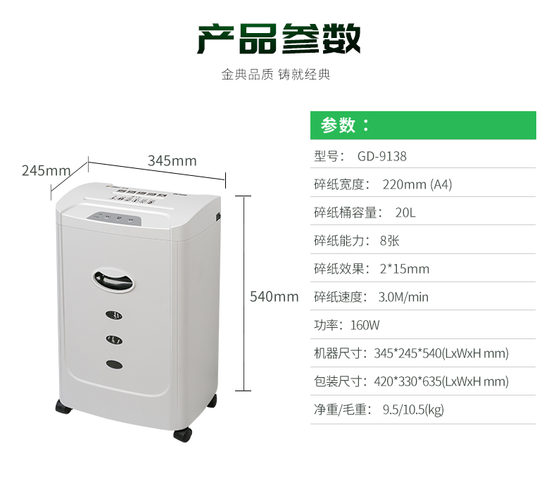 碎纸宽度(mm)  :   220