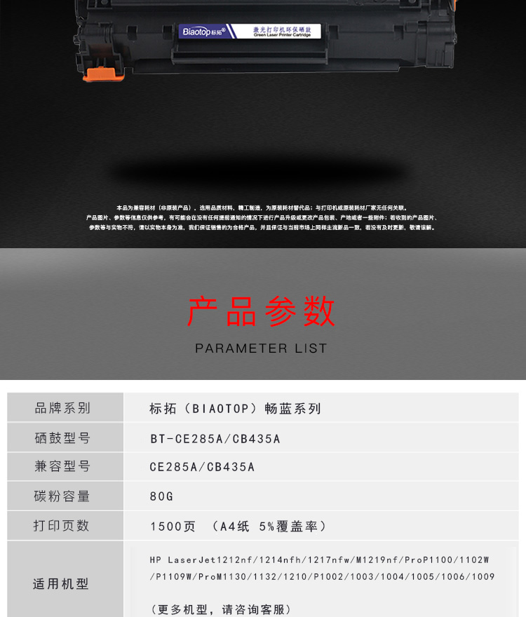 适用机型  :   HP LaserJet 1212nf/1214nfh/1217nfw/M1219nf /Pro P1100/1102W/P1109W /Pro M1130/1132/1210/ P1002/1003/1004/1005/1006/1009
