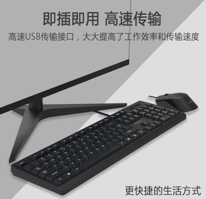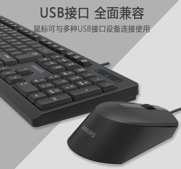 飞利浦SPT6234有线办公键鼠套装 笔记本台式电脑USB商务键盘鼠标