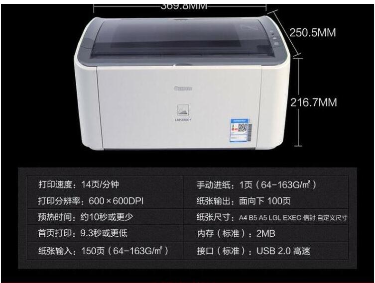 canon佳能LBP2900+打印机 小型A4纸凭证家用黑白激光 2900打印机