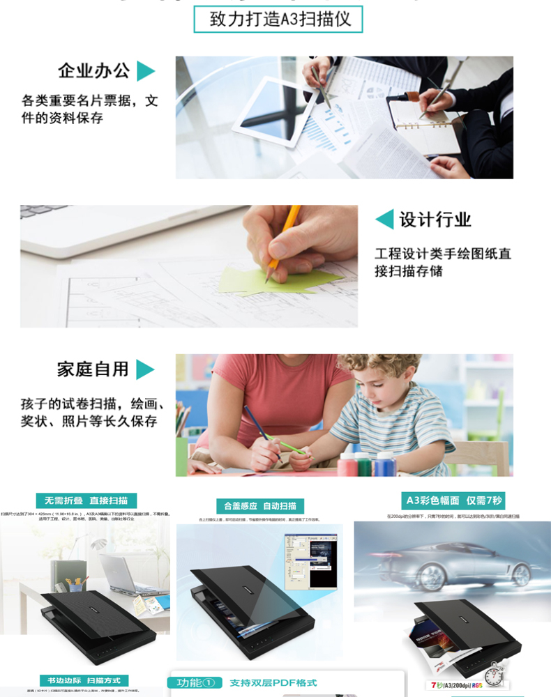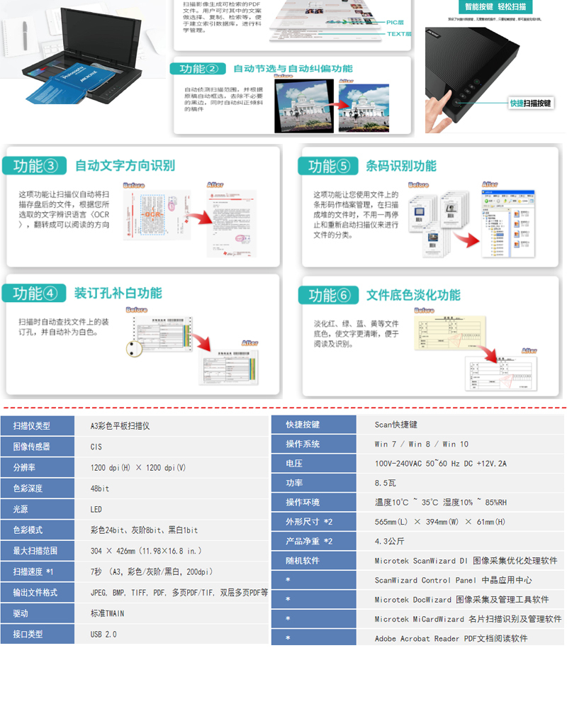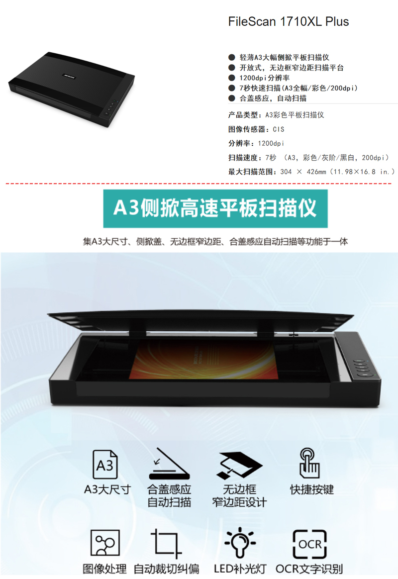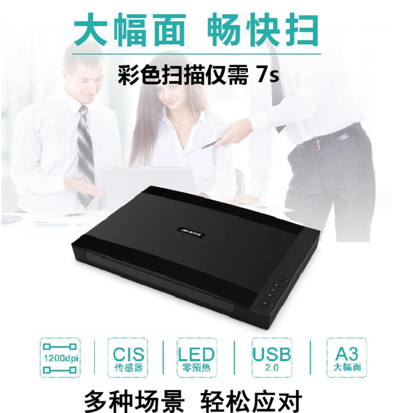扫描速度  :   A3 彩色 200dpi 9秒