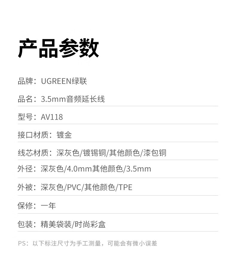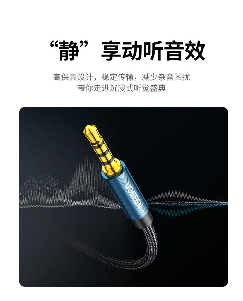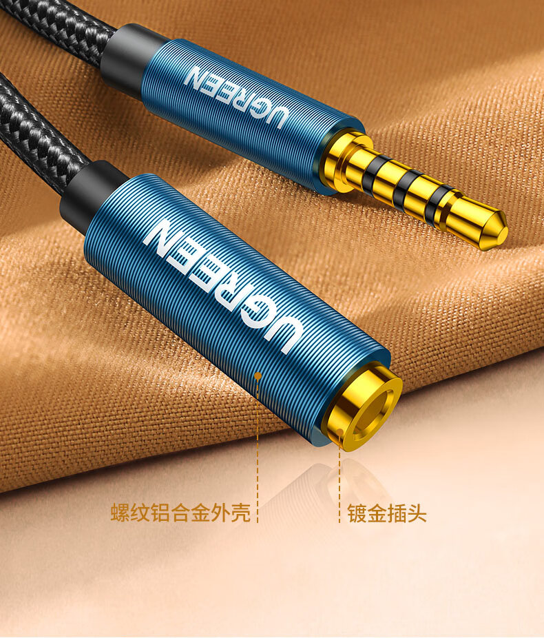 绿联/UGREEN 40675 网络连接设备 绿联 网络连接设备 3.5mm公对母音频延长线连接线带麦克风 立体声车载AUX音响加长线2米 AV118 40675