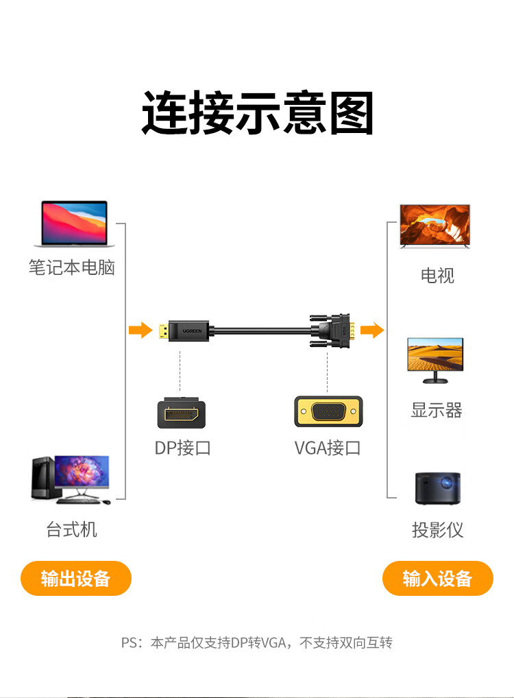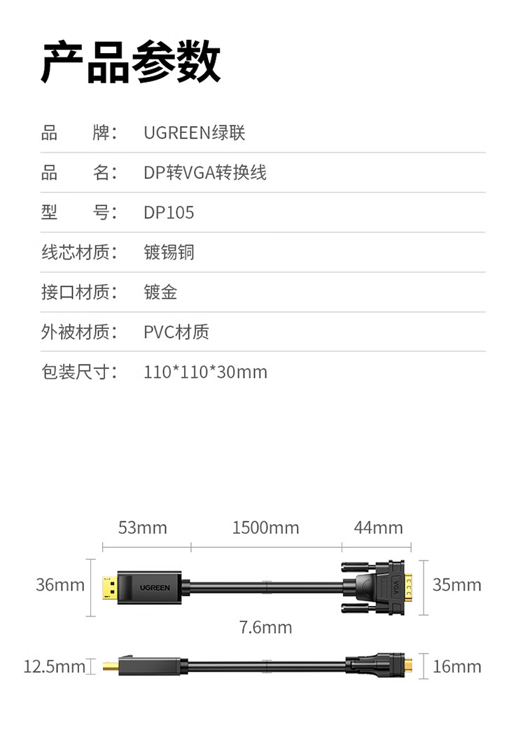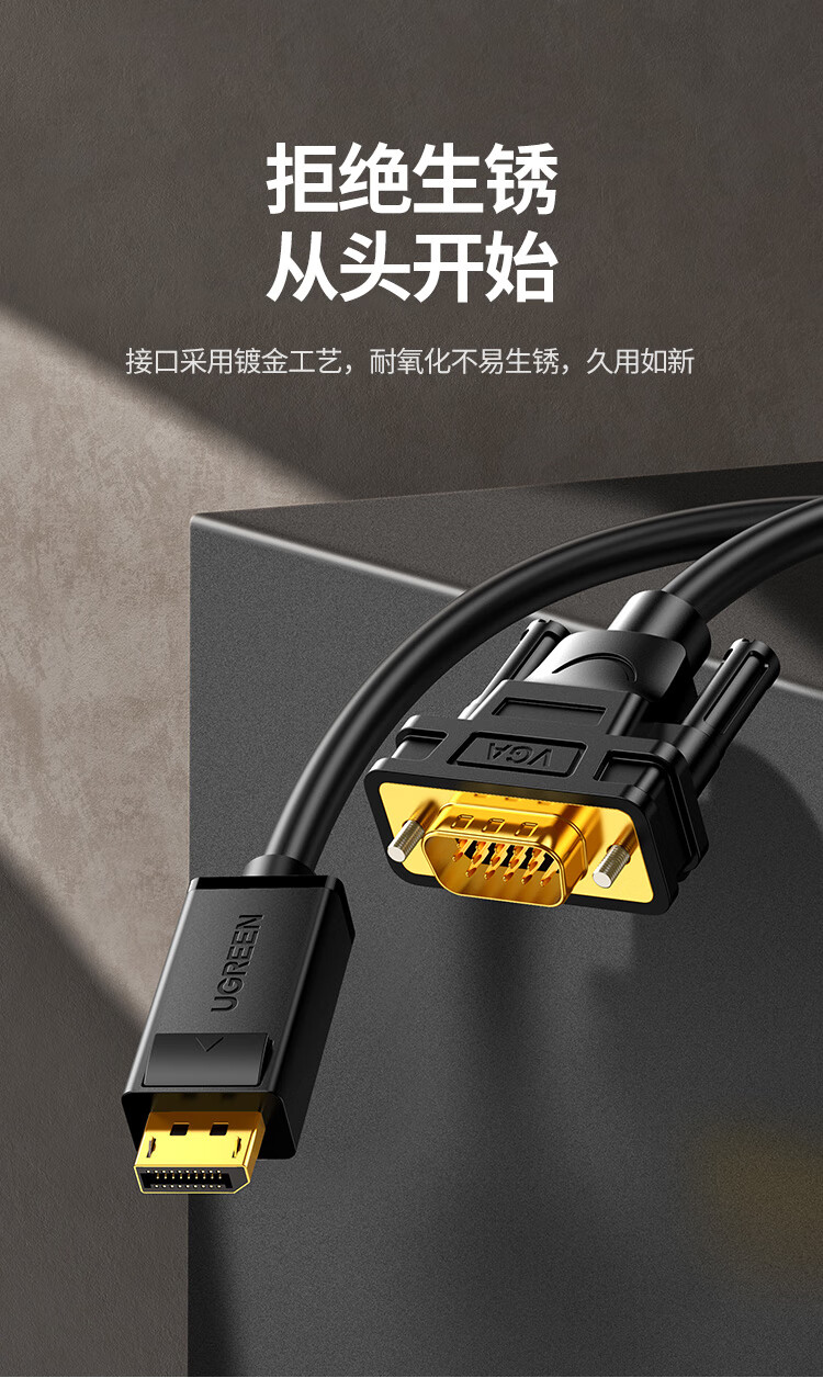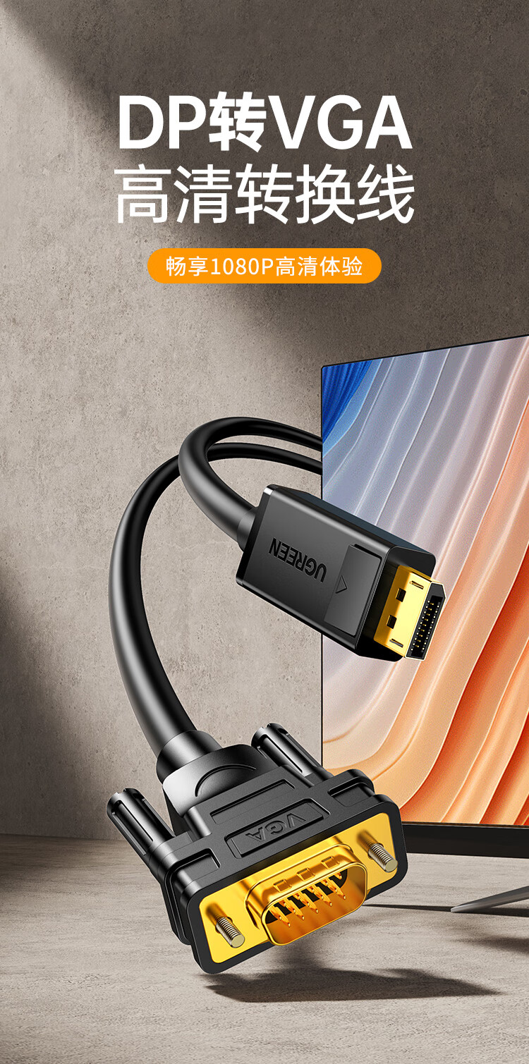 绿联/UGREEN DP105 网络连接设备 绿联 DP105 DP转VGA转换线 DisplayPort转VGA公对公 1.5米10247 网络连接设备