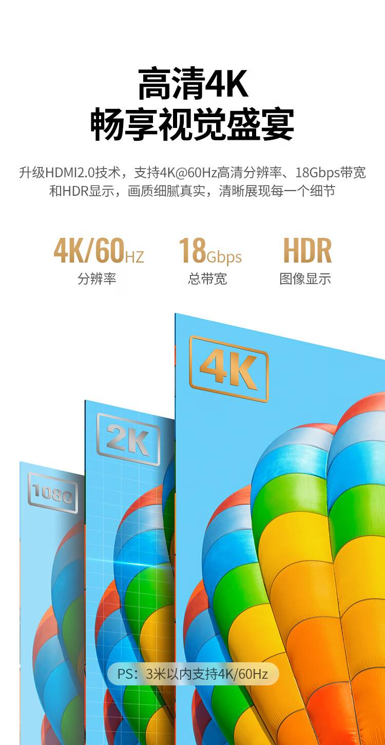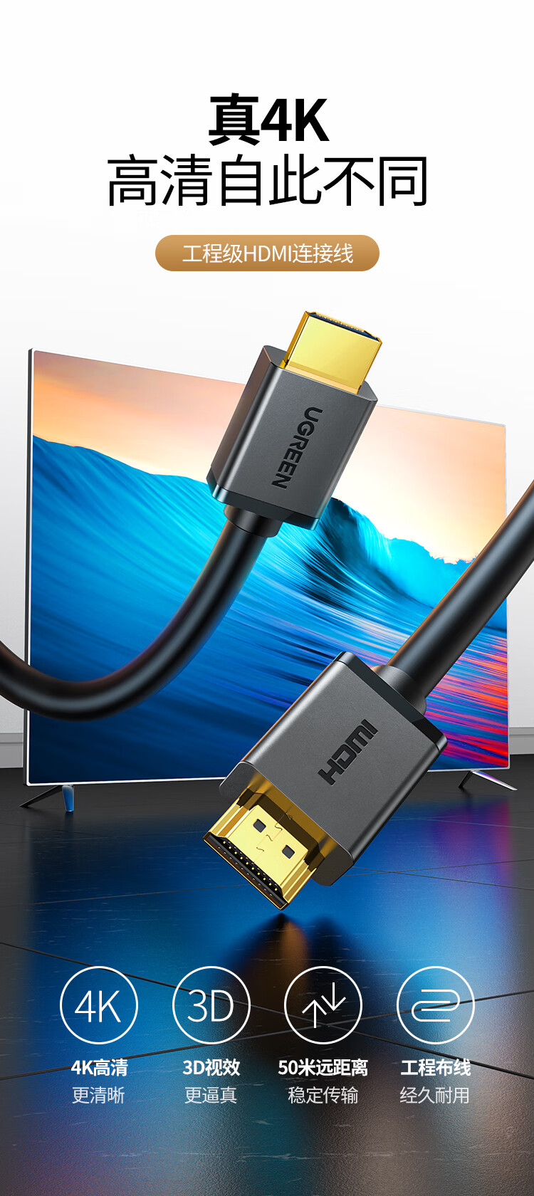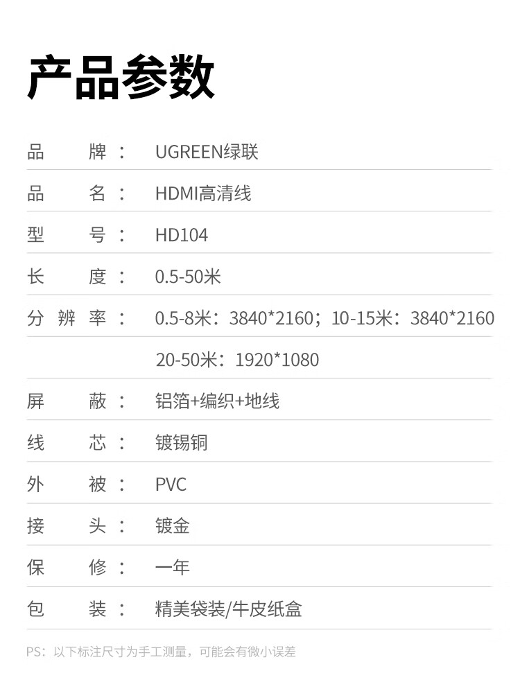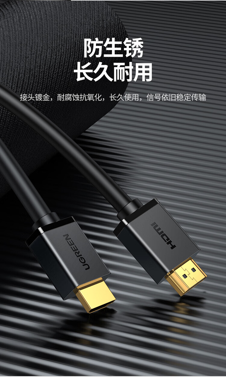绿联/UGREEN 60820 网络连接设备 绿联 网络连接设备 HDMI线数字高清线 HDMI工程线 3D视频线 显示器数据连接线 1.5米 HD104 60820